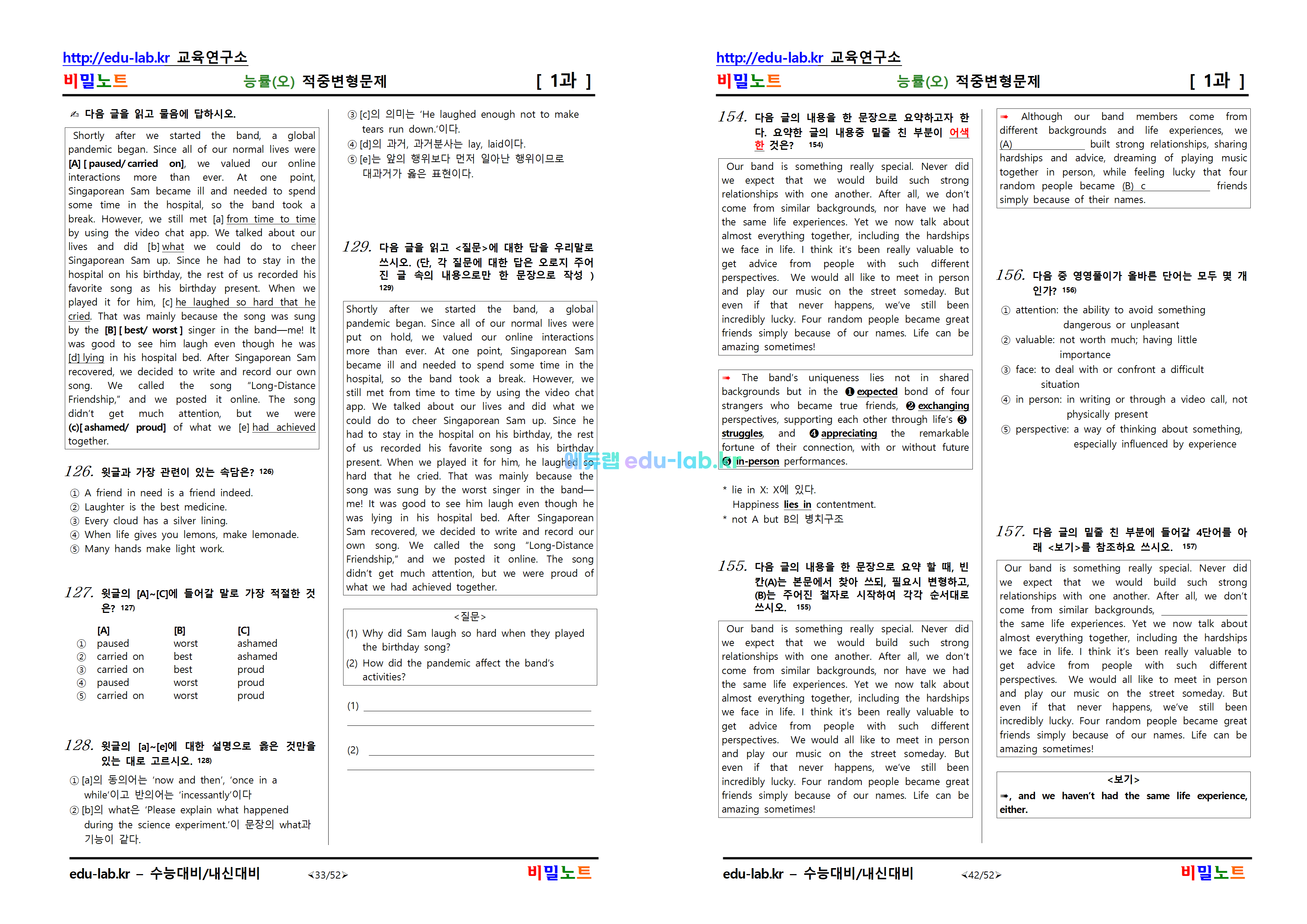 [비밀노트_에듀랩(edu-lab.kr)] 공통영어2 능률(오) Lesson1 문항별_유형별 적중변형문제(프리패스=정회원 전용자료)