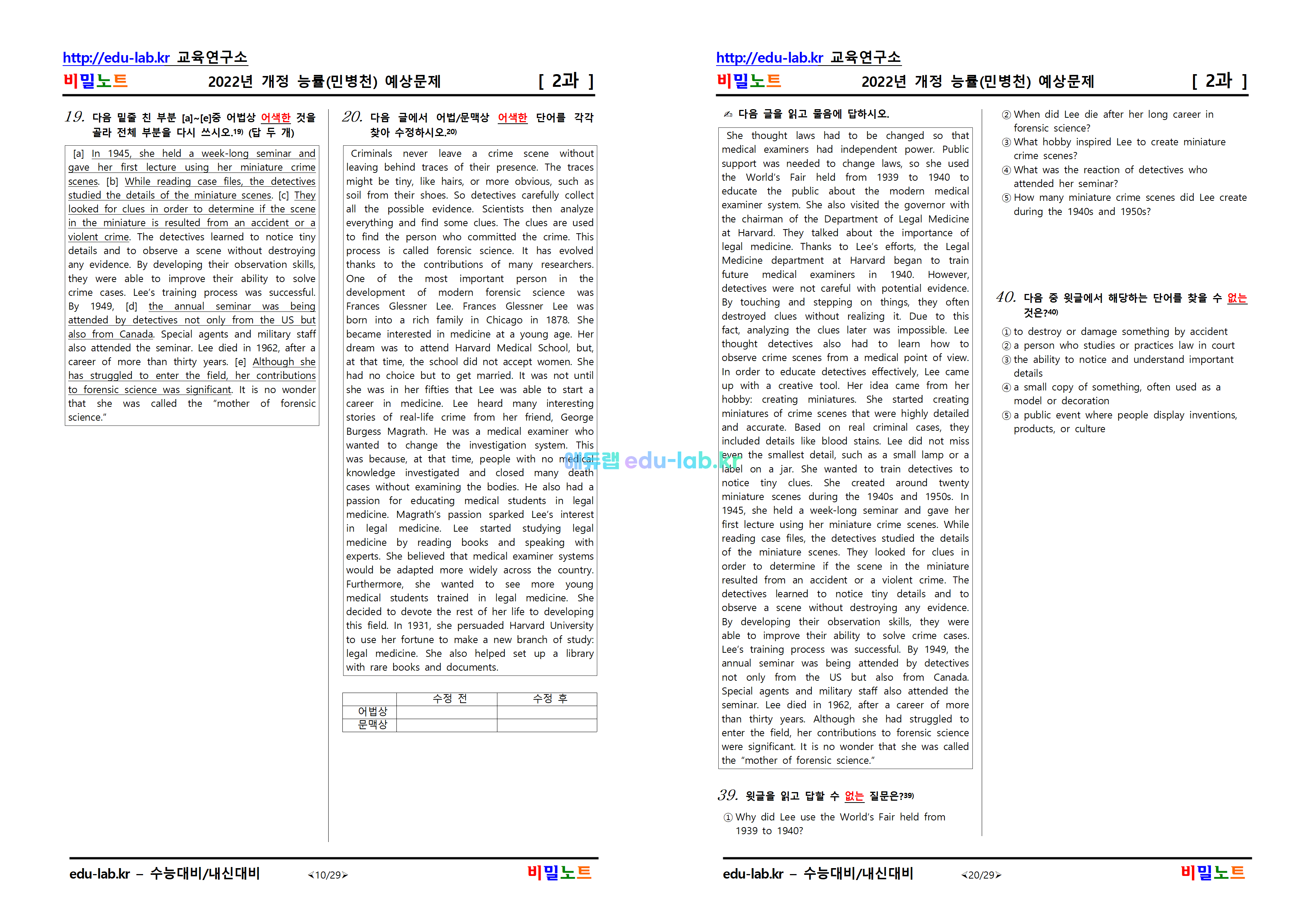 [비밀노트_에듀랩(edu-lab.kr)] 공통영어2 능률(민) 2과 적중변형문제(프리패스_정회원 전용자료)