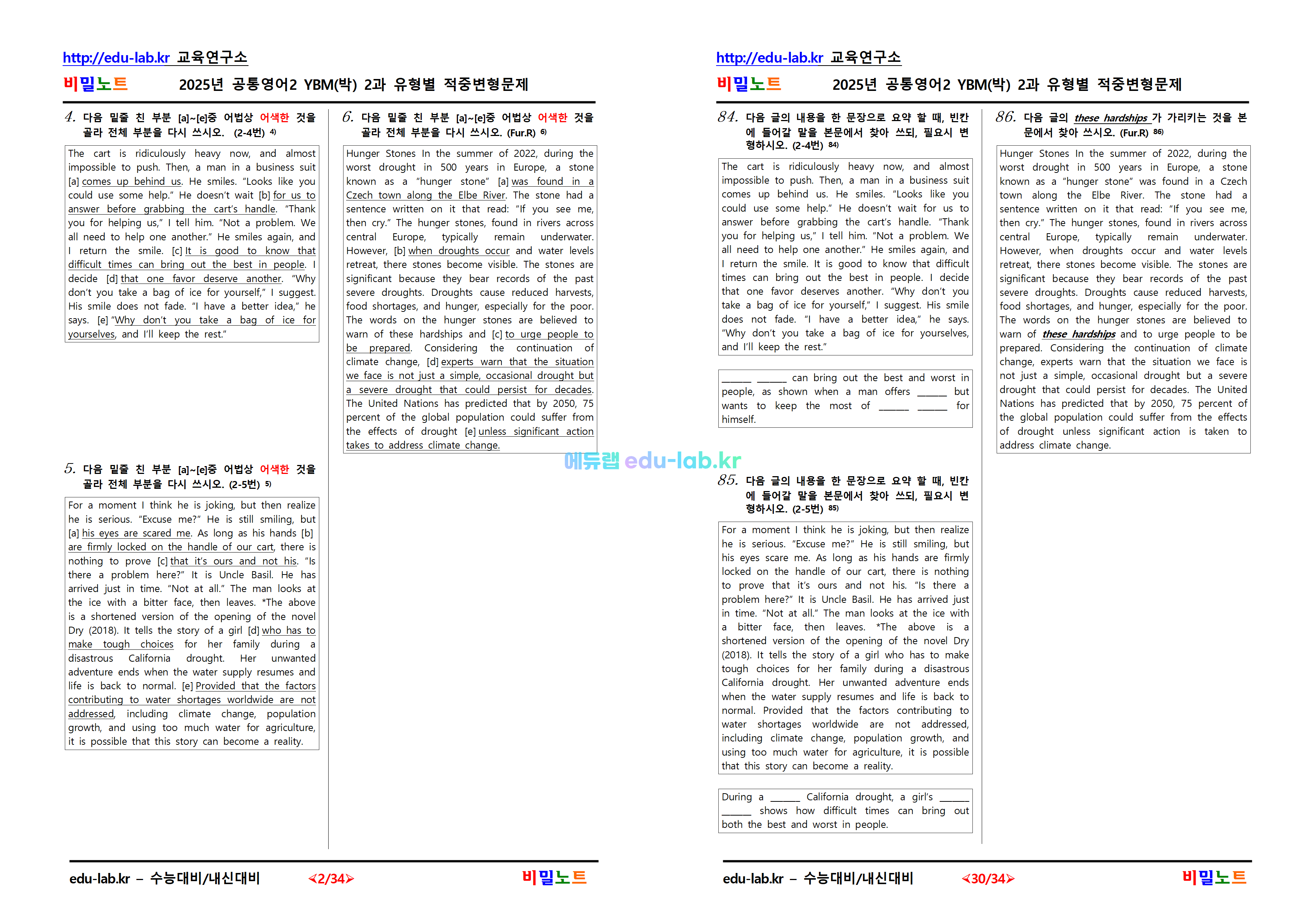 [비밀노트_에듀랩(edu-lab.kr)] 공통영어2_ybm(박) 2과 문항별_유형별적중변형문제(프리패스=정회원 자료)