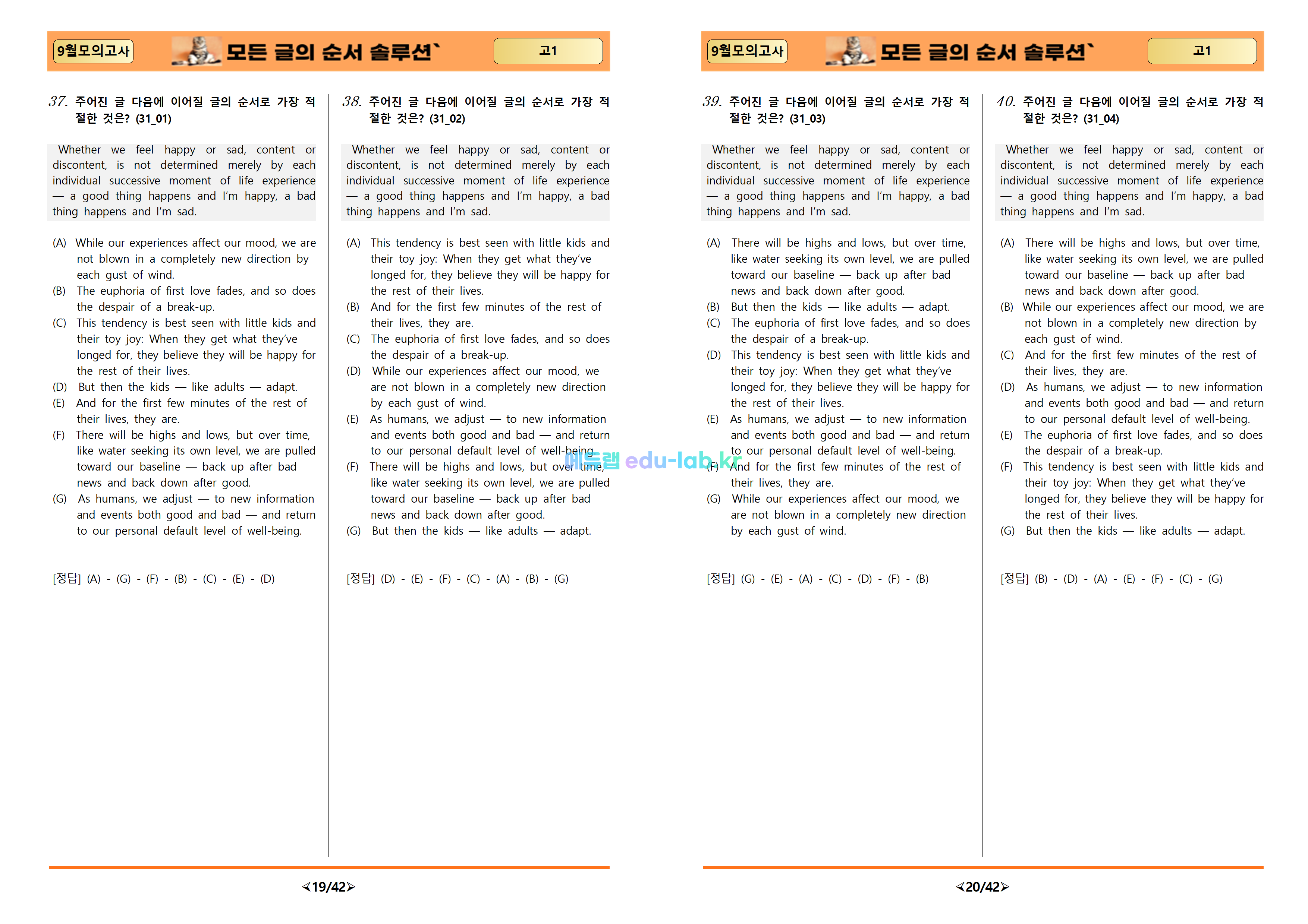 [비밀노트_에듀랩(edu-lab.kr)] 25년 9월 고1 교육청_모든글의순서(4세트)-학생용추가