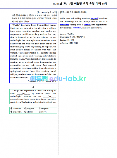 3. 요약문에 대해 의미는 같지만 다른 표현으로 요약문을 한번 더 복습하도록 했습니다.
