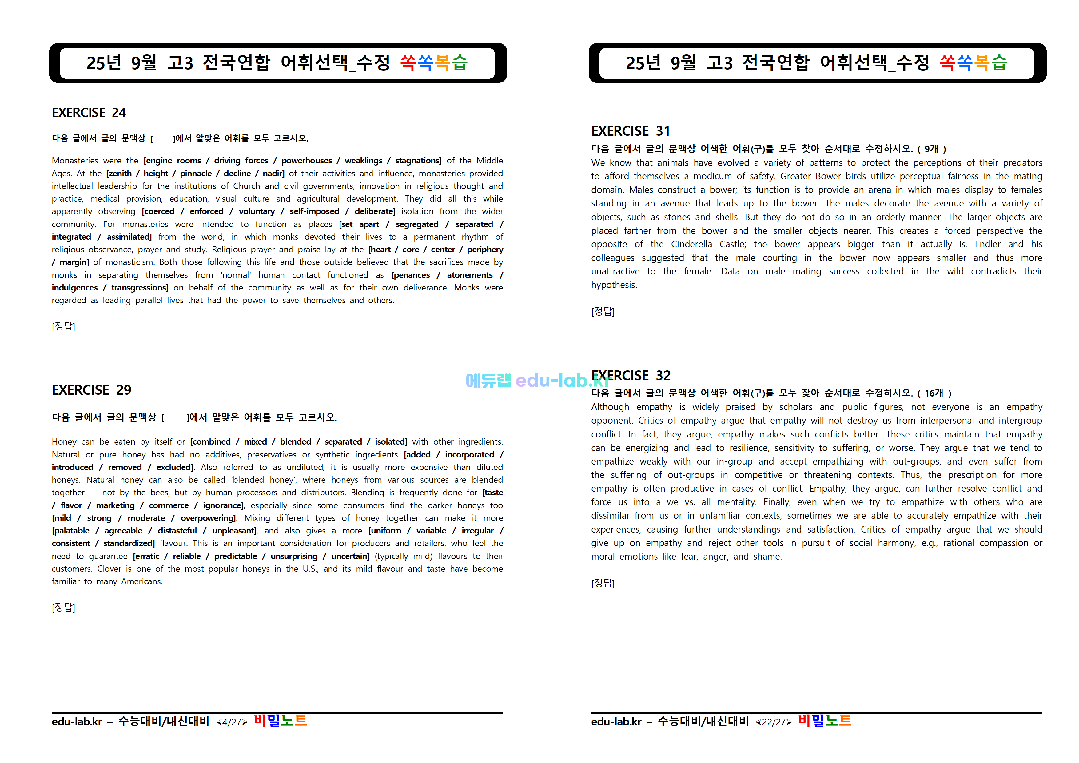 [비밀노트_에듀랩(edu-lab.kr)] 25년 9월 고3 평가원모의고사__쏙쏙복습_어휘선택(4개중)_어휘수정