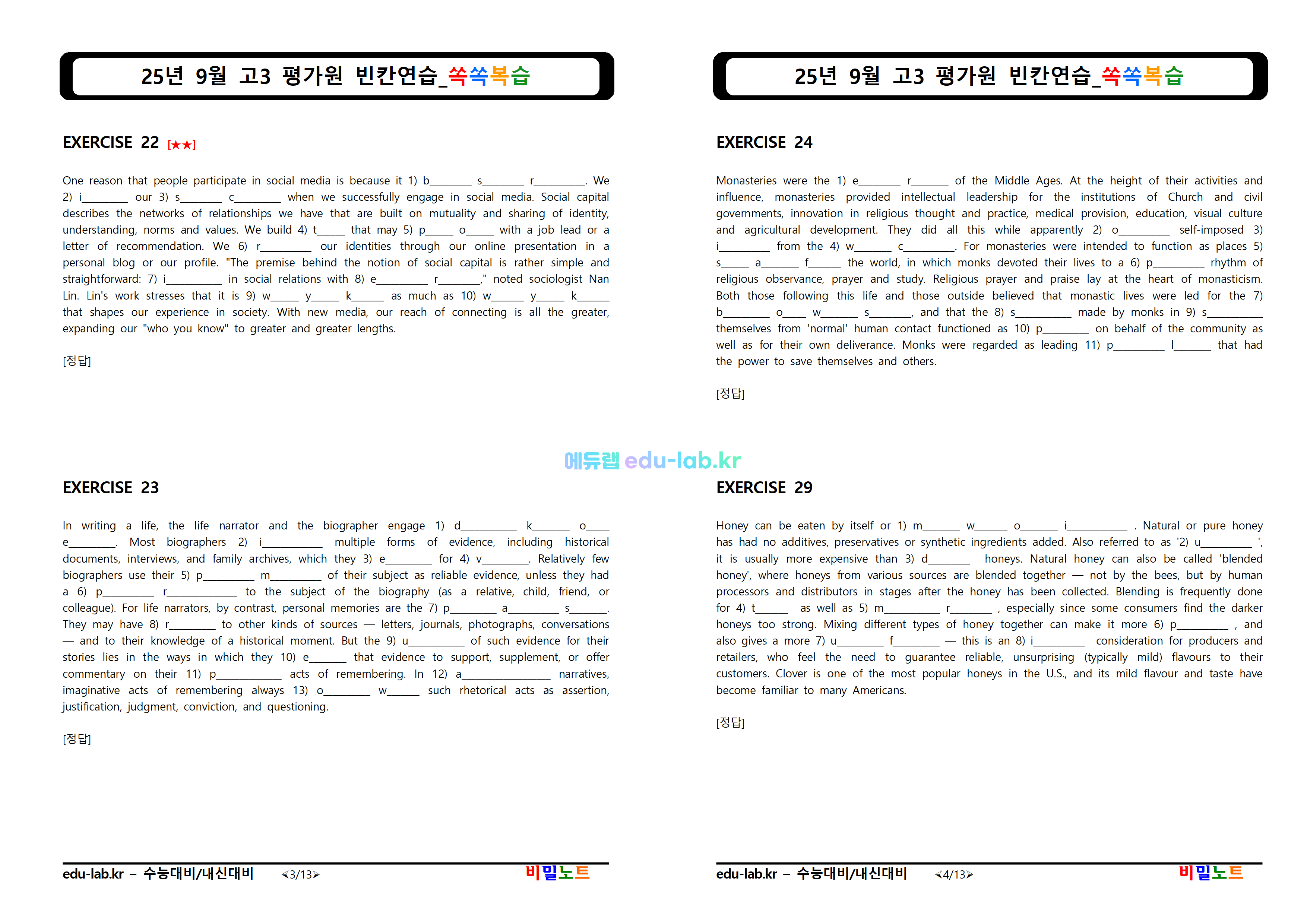 [비밀노트_에듀랩(edu-lab.kr)] 25년 9월 고3 평가원모의고사_쏙쏙복습_빈칸연습(강사용_학생용)