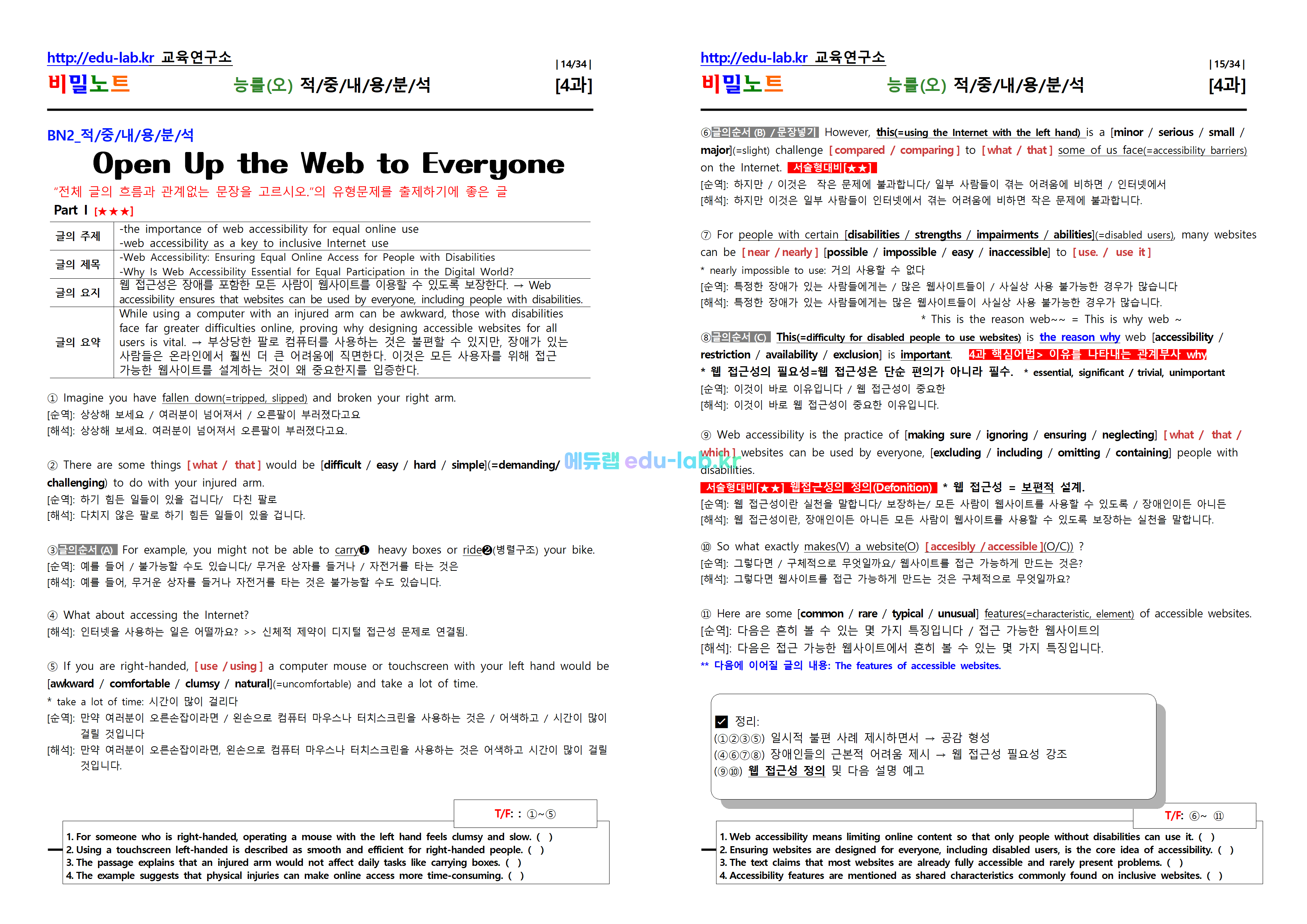 [비밀노트_에듀랩(edu-lab.kr)] 공통영어2 능률(오) Lesson4 적중내용분석 및 단계별복습-교사용-학생용(프리패스=정회원 전용자료)