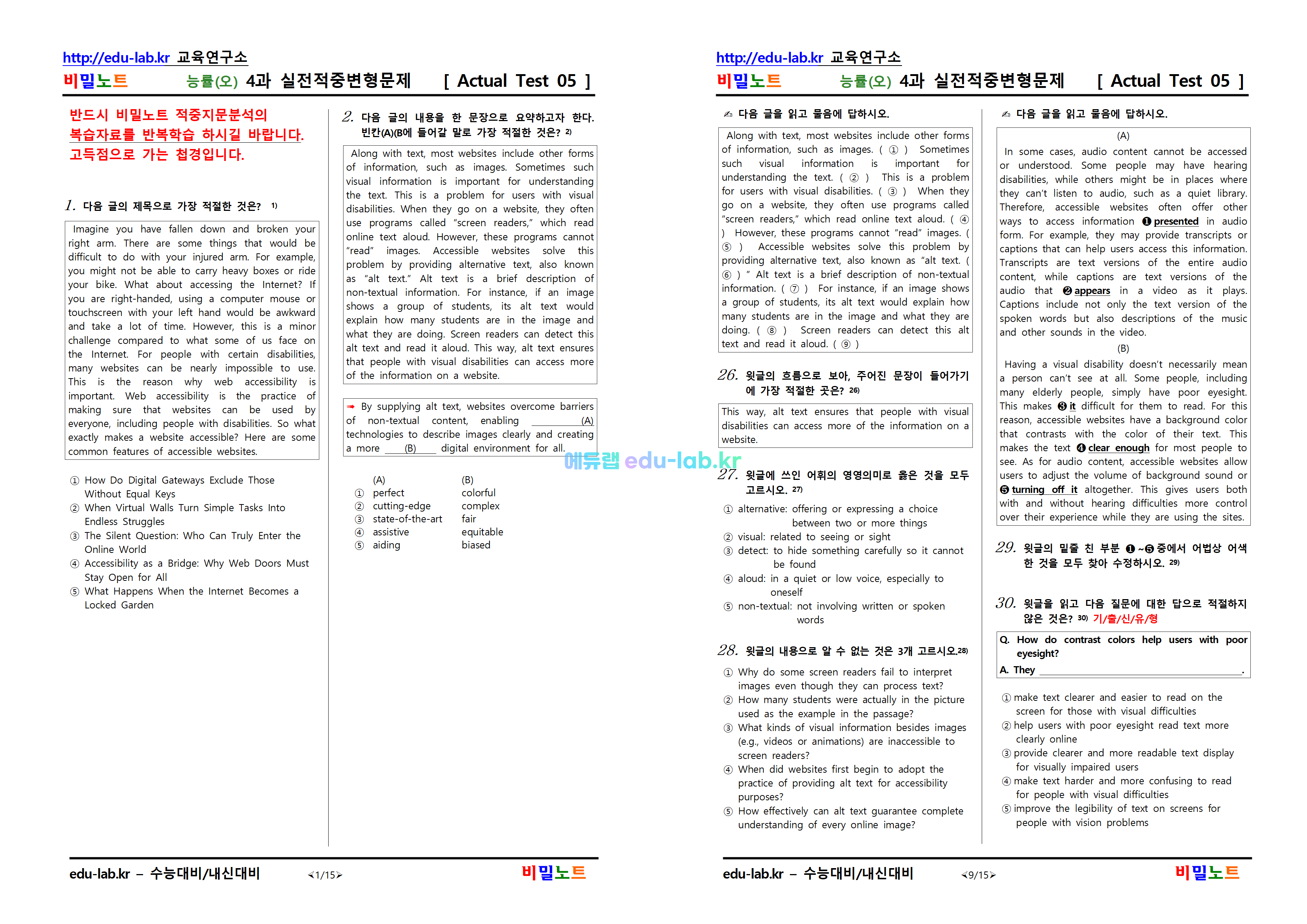 자료설명[비밀노트_에듀랩(edu-lab.kr)] 2025년 공통영어2 능률(오)_4과_실전적중변형문제_5차(프리패스=정회원전용자료)누적243문제