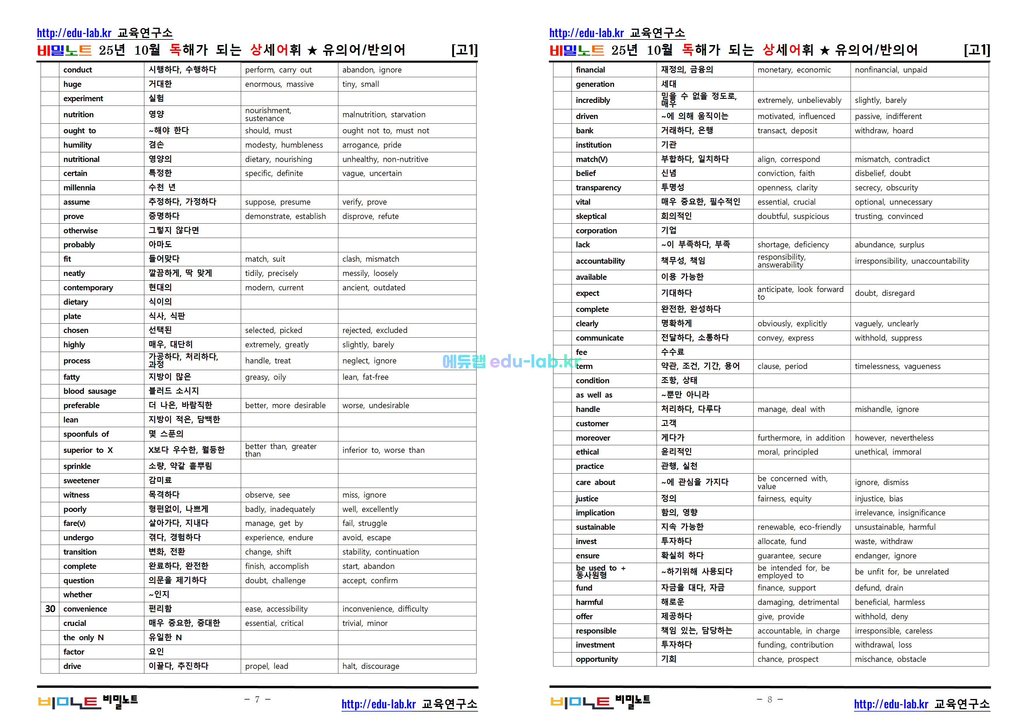 [비밀노트_에듀랩(edu-lab.kr)] 25년 10월 고1 독해가되는 상세어휘_유의어_반의어_TEST포함[비밀노트_에듀랩(edu-lab.kr)] 25년 10월 고1 독해가되는 상세어휘_유의어_반의어_TEST포함