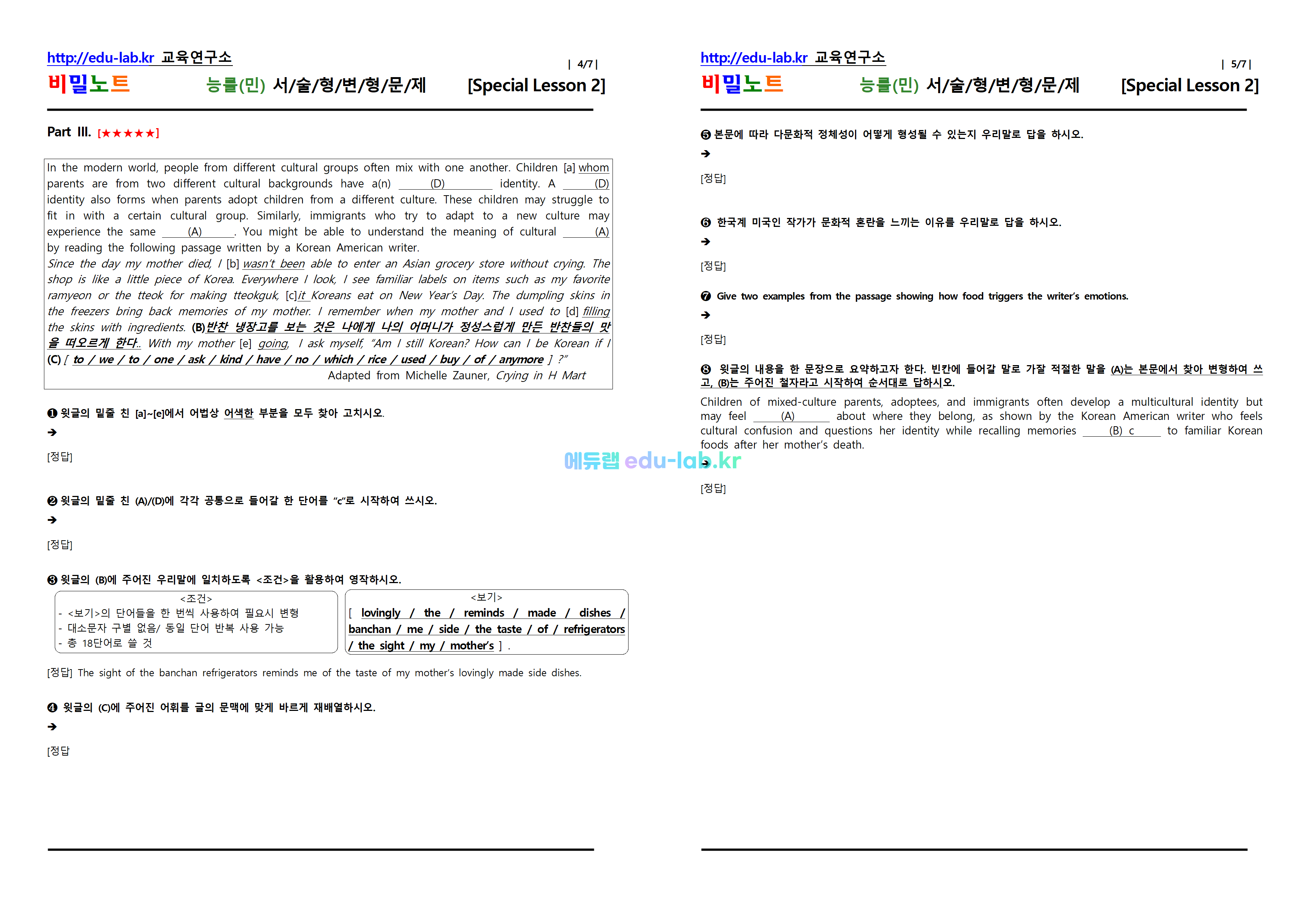 [비밀노트_에듀랩(edu-lab.kr)] 공통영어2 능률(민) Special Lesson2과 서술형변형문제(프리패스=정회원 전용자료)[비밀노트_에듀랩(edu-lab.kr)] 공통영어2 능률(민) Special Lesson2과 서술형변형문제
