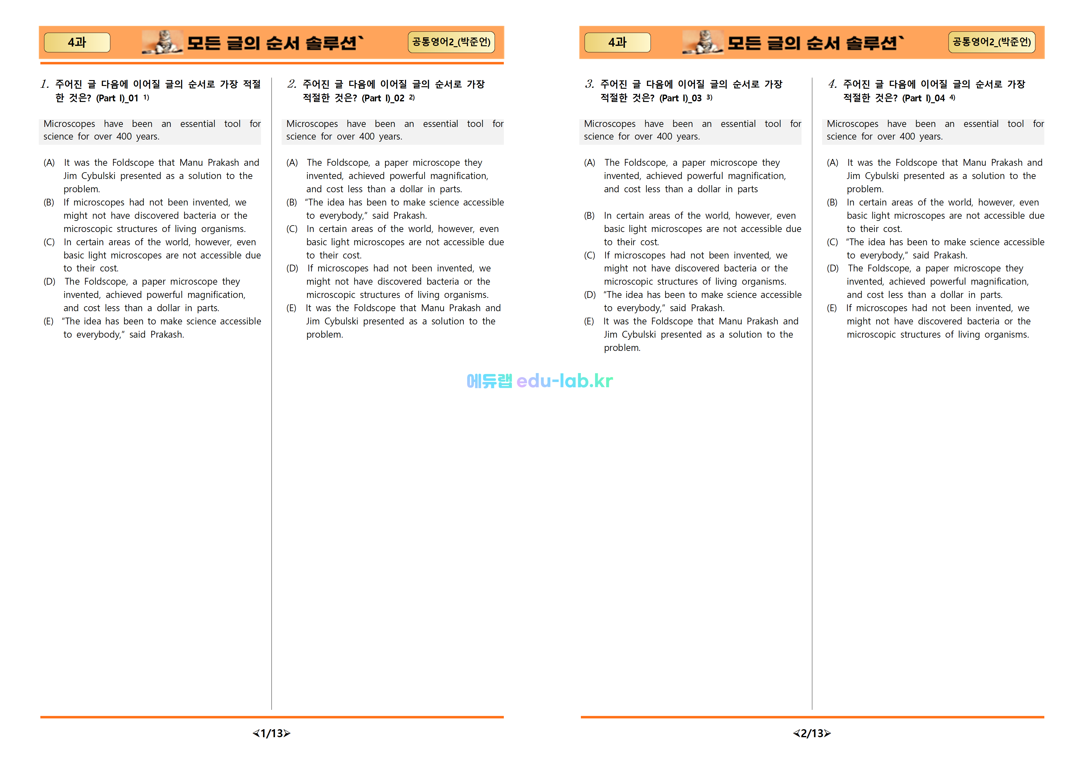 [비밀노트_에듀랩(edu-lab.kr)] 공통영어2 ybm(박) 4과 _모든글의순서(프리패스=정회원 전용자료)[비밀노트_에듀랩(edu-lab.kr)] 공통영어2 ybm(박) 4과 _모든글의순서(프리패스=정회원 전용자료)