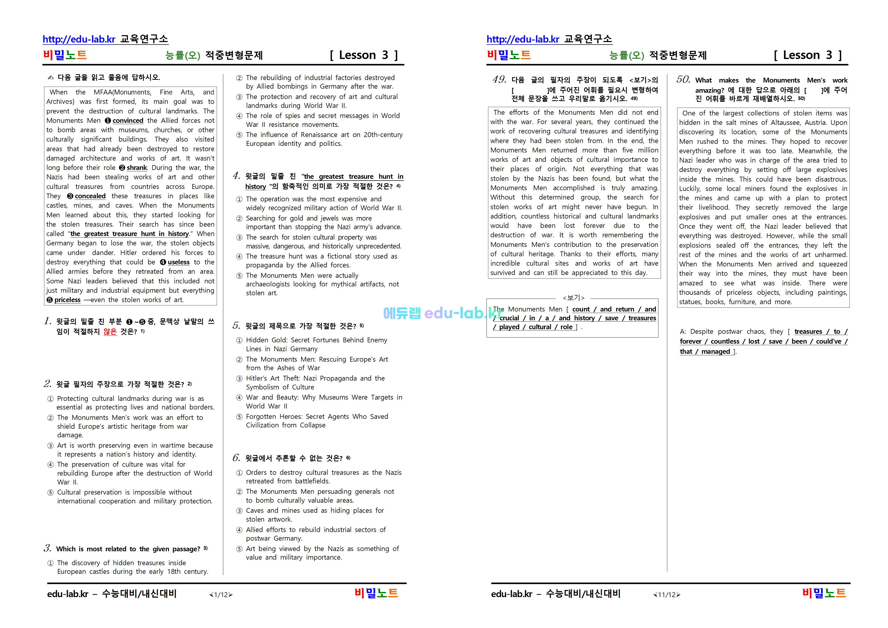 [비밀노트_에듀랩(edu-lab.kr)] 공통영어2 능률(오) Lesson3 적중변형문제_50문항_2차_Upload(프리패스=정회원전용자료)[비밀노트_에듀랩(edu-lab.kr)] 공통영어2 능률(오) Lesson3 적중변형문제_50문항_2차_Upload