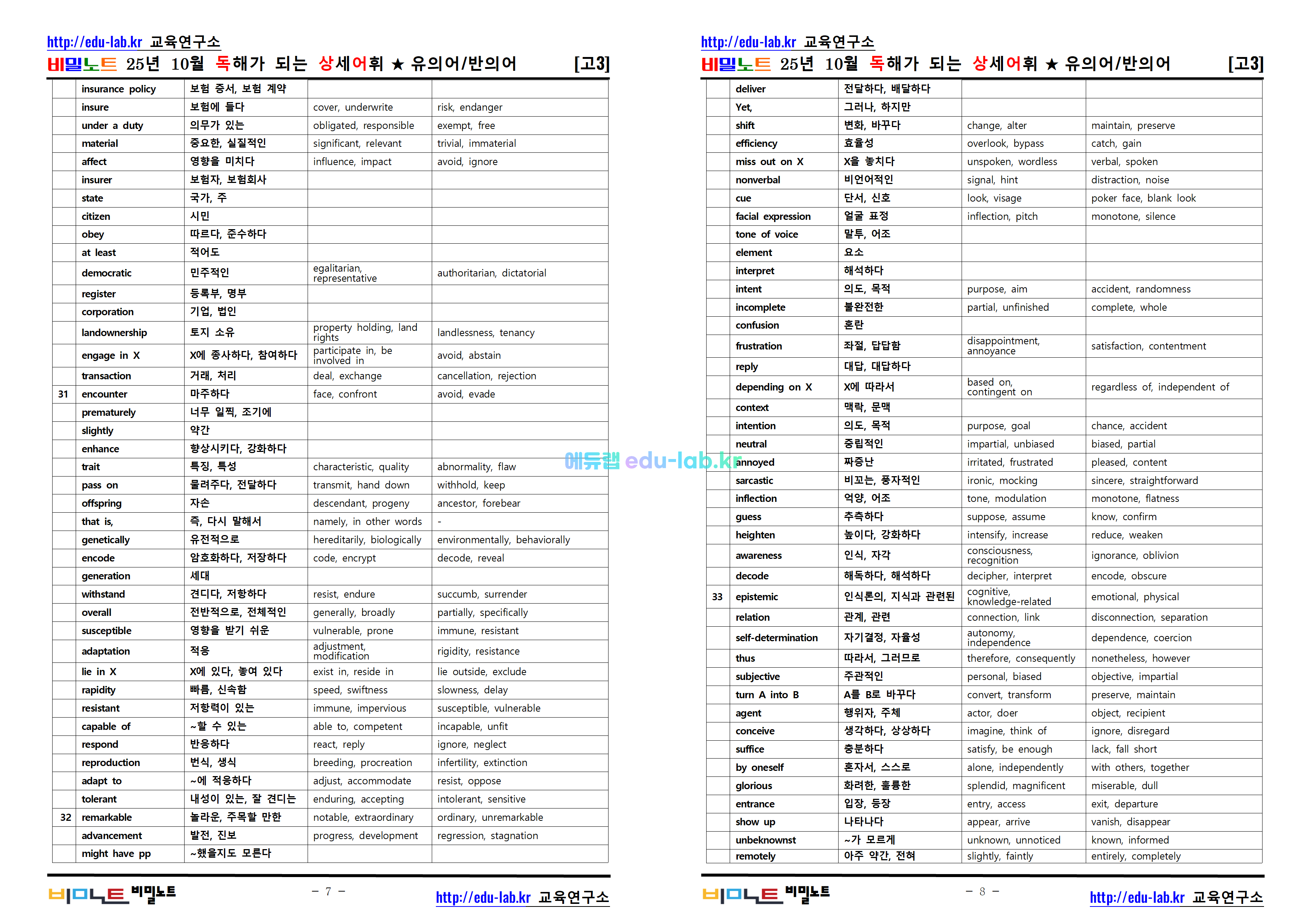[비밀노트_에듀랩(edu-lab.kr)] 25년 10월 고3 독해가 되는 상세어휘_유의어_반의어_TEST포함현재 정회원=프리패스(1년_13만원),