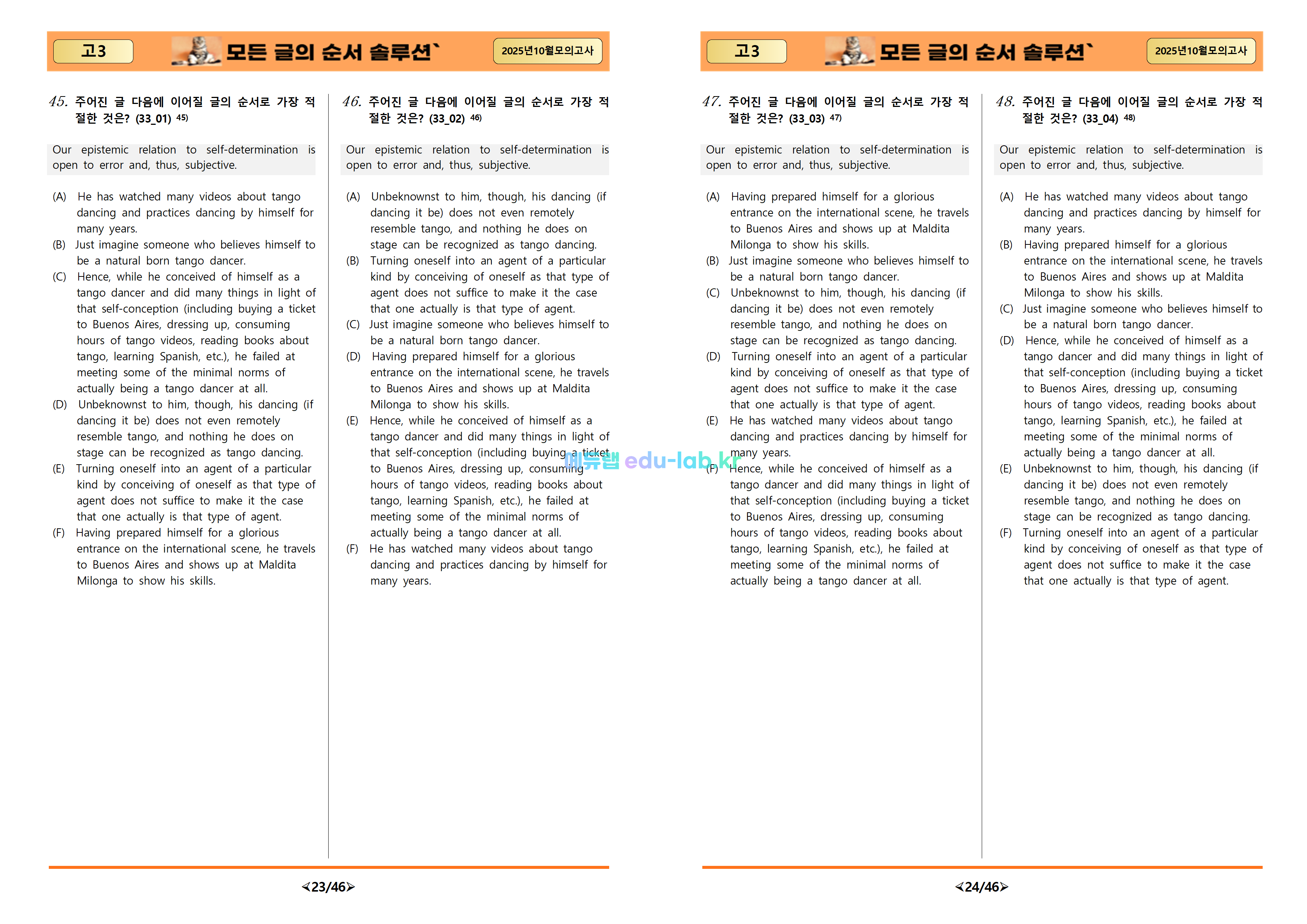 [비밀노트_에듀랩(eud-lab.kr)] 25년 10월 고3 교육청 _모든글의순서(문항당 4세트)(프리패스=정회원 전용자료)