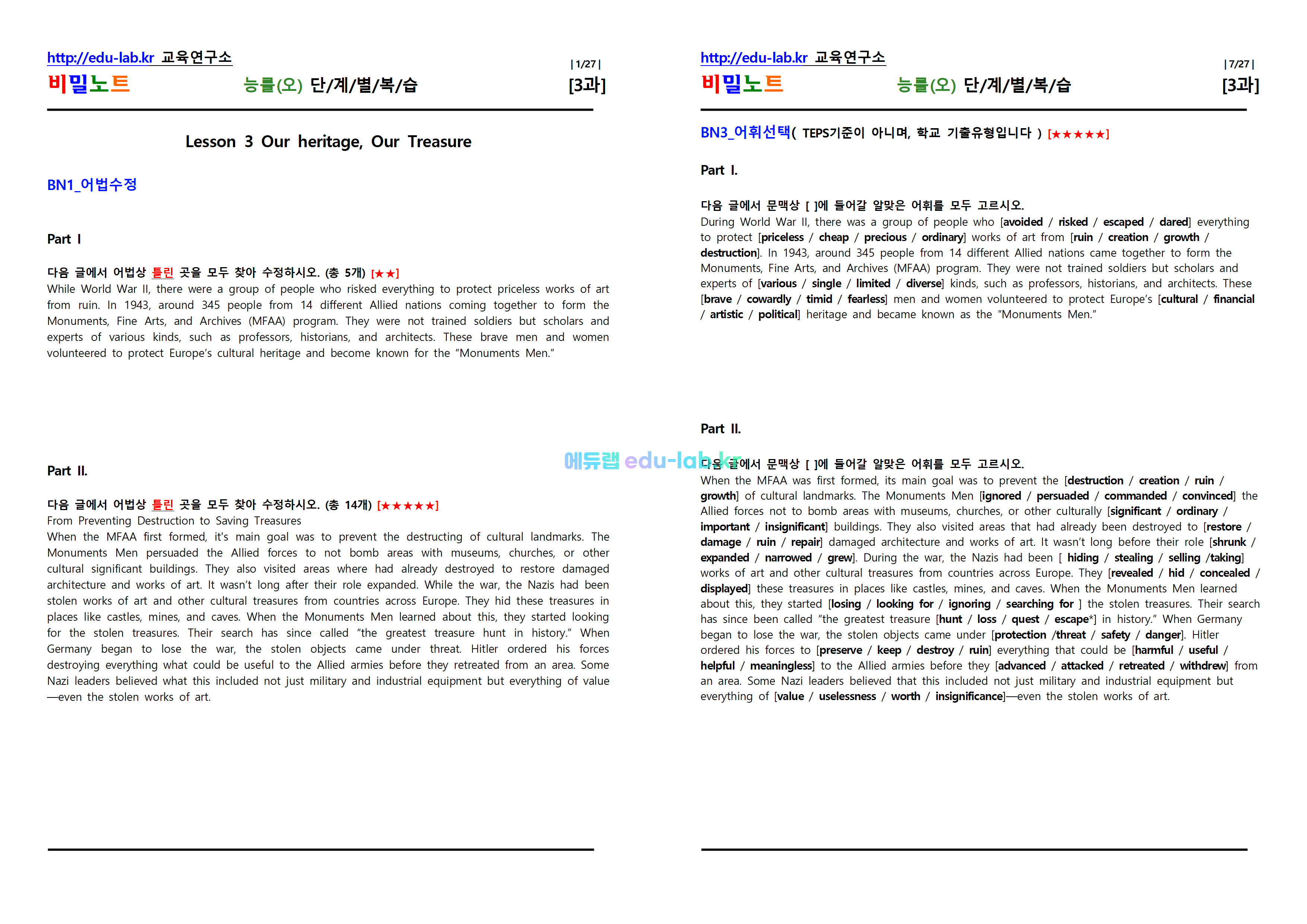 자료설명 [비밀노트_에듀랩(edu-lab.kr)] 2022년 공통영어2 능률(오)_3과_적중 쏙쏙복습(프리패스=정회원전용자료)