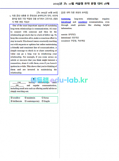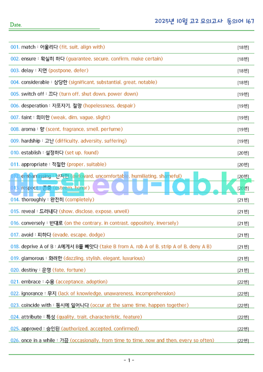 표제어는 지문 속에서 사용된 한글뜻을 기준으로 작성하였습니다.
