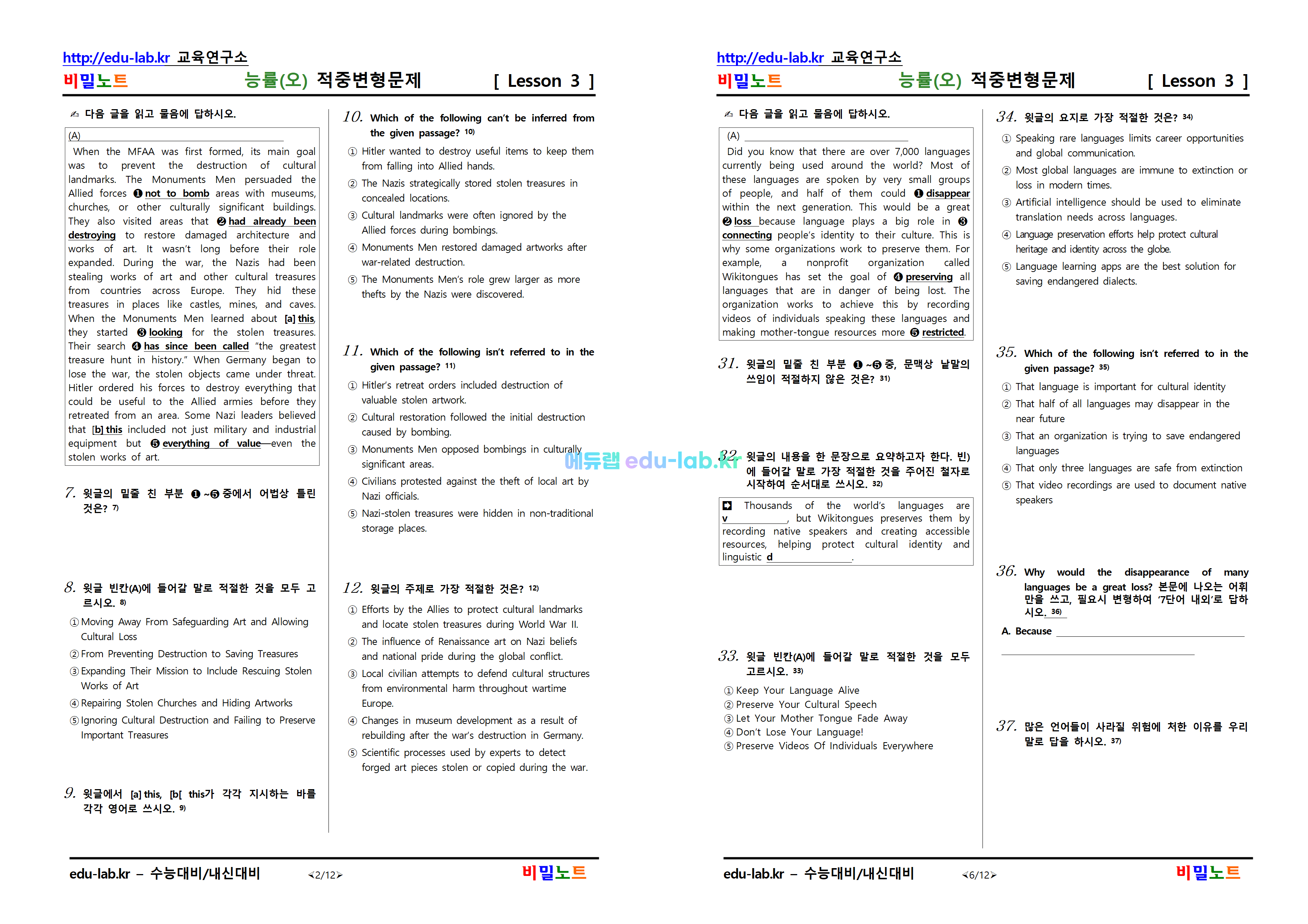 [비밀노트_에듀랩(edu-lab.kr)] 공통영어2 능률(오) Lesson3 적중변형문제_50문항_1차_Upload[비밀노트_에듀랩(edu-lab.kr)] 공통영어2 능률(오) Lesson3 적중변형문제_50문항_1차_Upload
