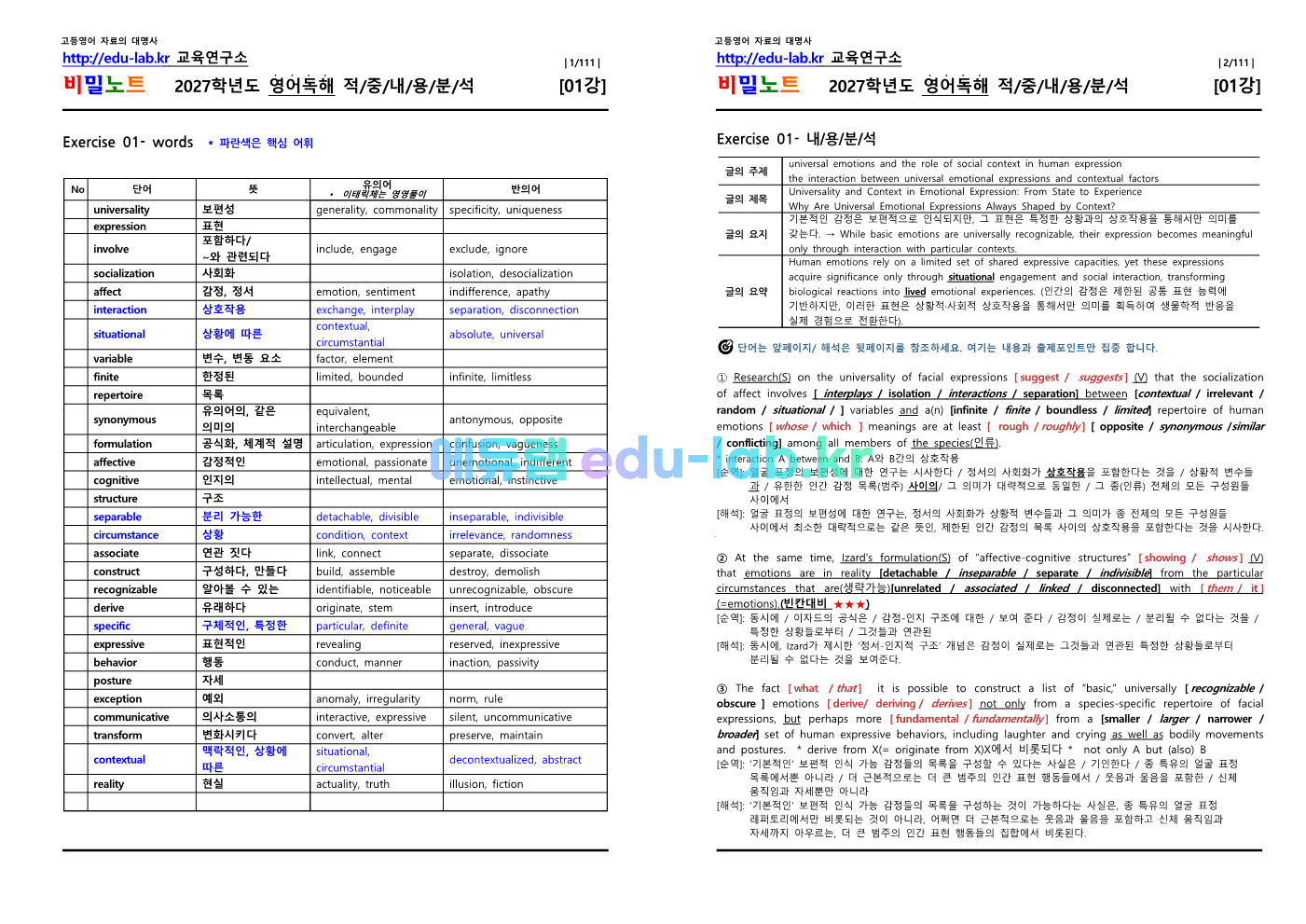 [비밀노트] 2027학년도 수특영독 01강 신(信)적중 내용및지문분석(정회원 전용자료)(ebs강의 텍스트 추출)