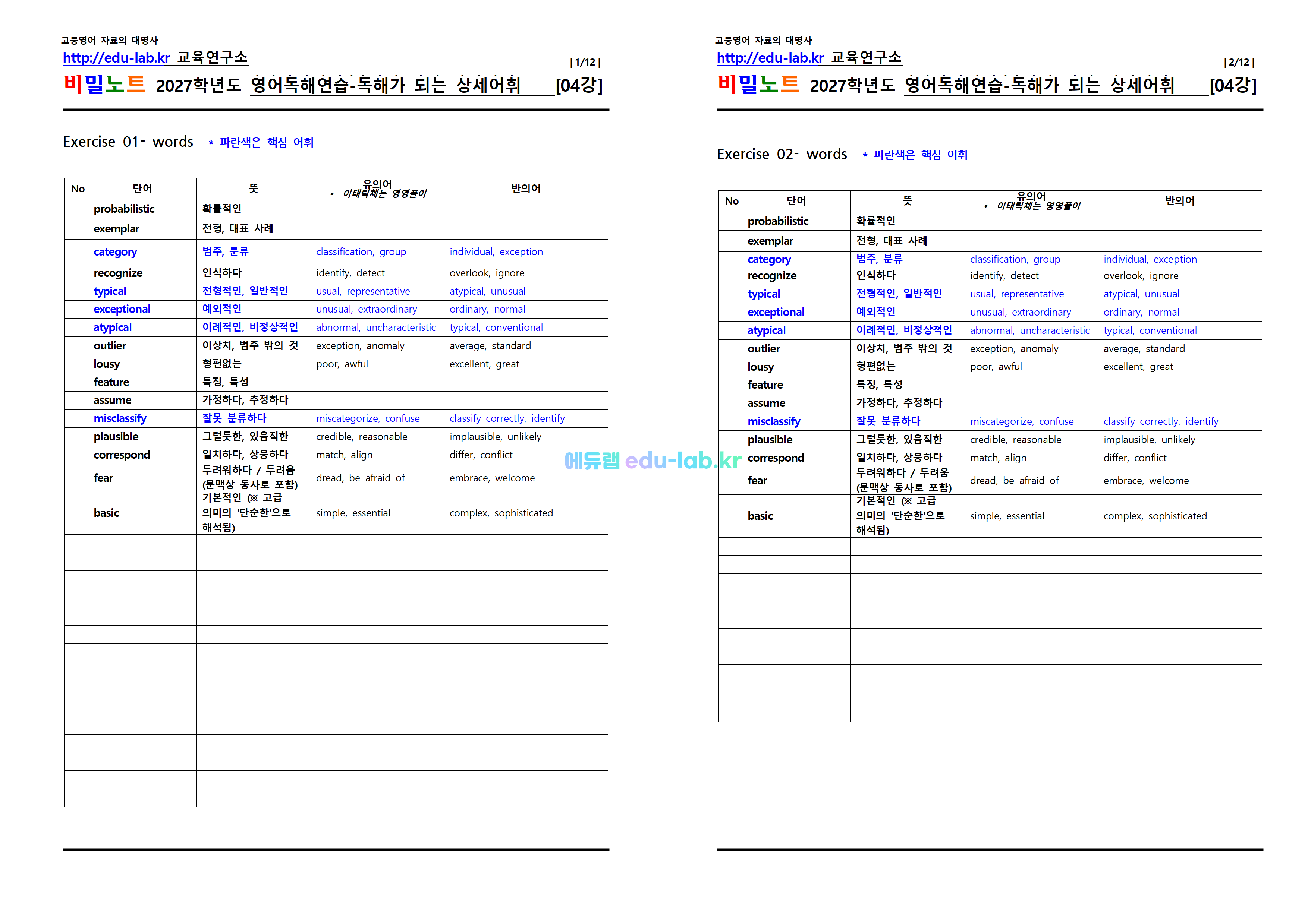 [비밀노트(edu-lab.kr)] 2027학년도 수특영독 04강 독해가 되는 상세어휘& 유의어 반의어 테스트포함(프리패스=정회원자료)