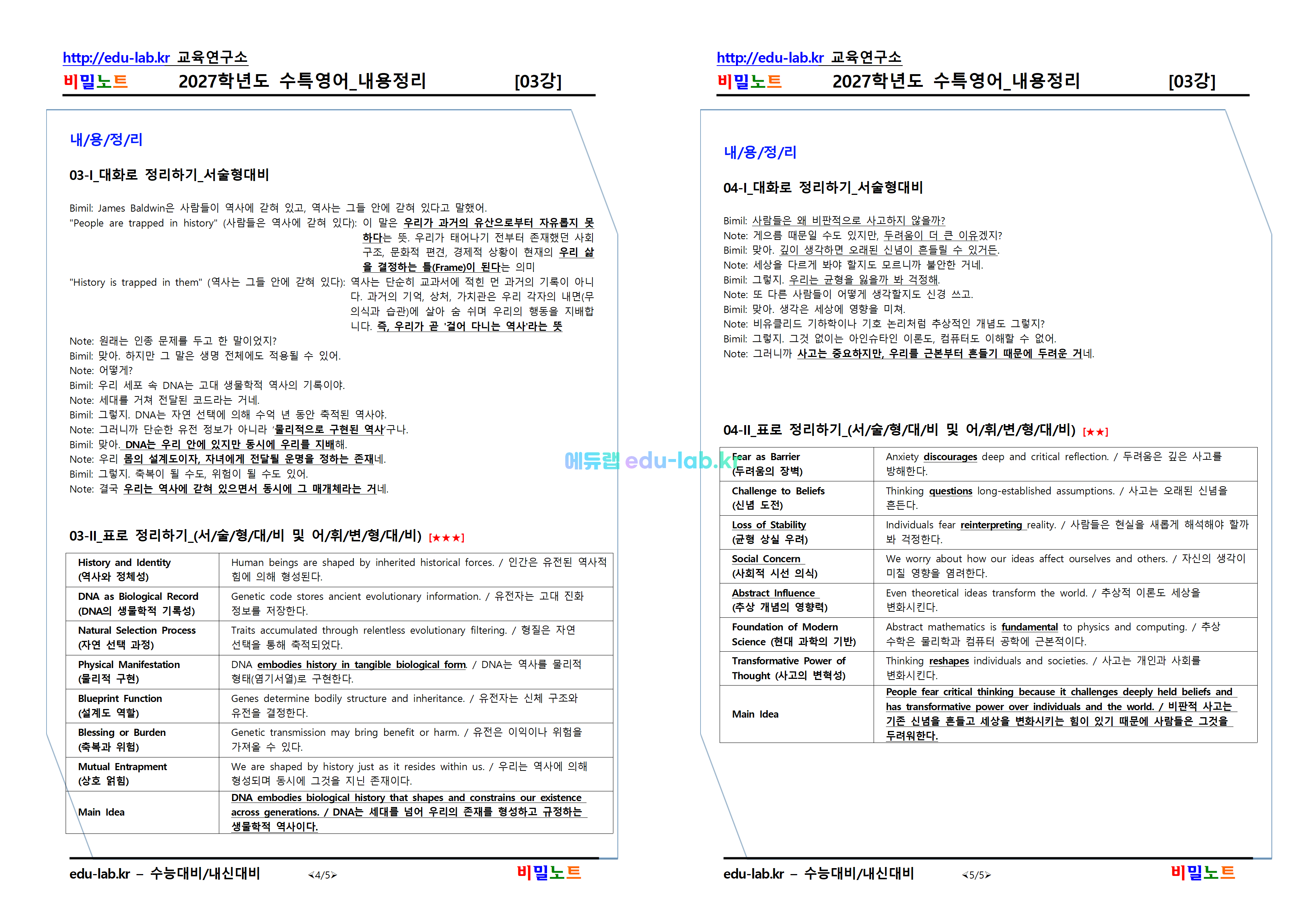 [아이들 탄성-고득점지름길 자료] 27학년도 수특영어 03강-07강_내용정리(프리패스=정회원 전용자료)