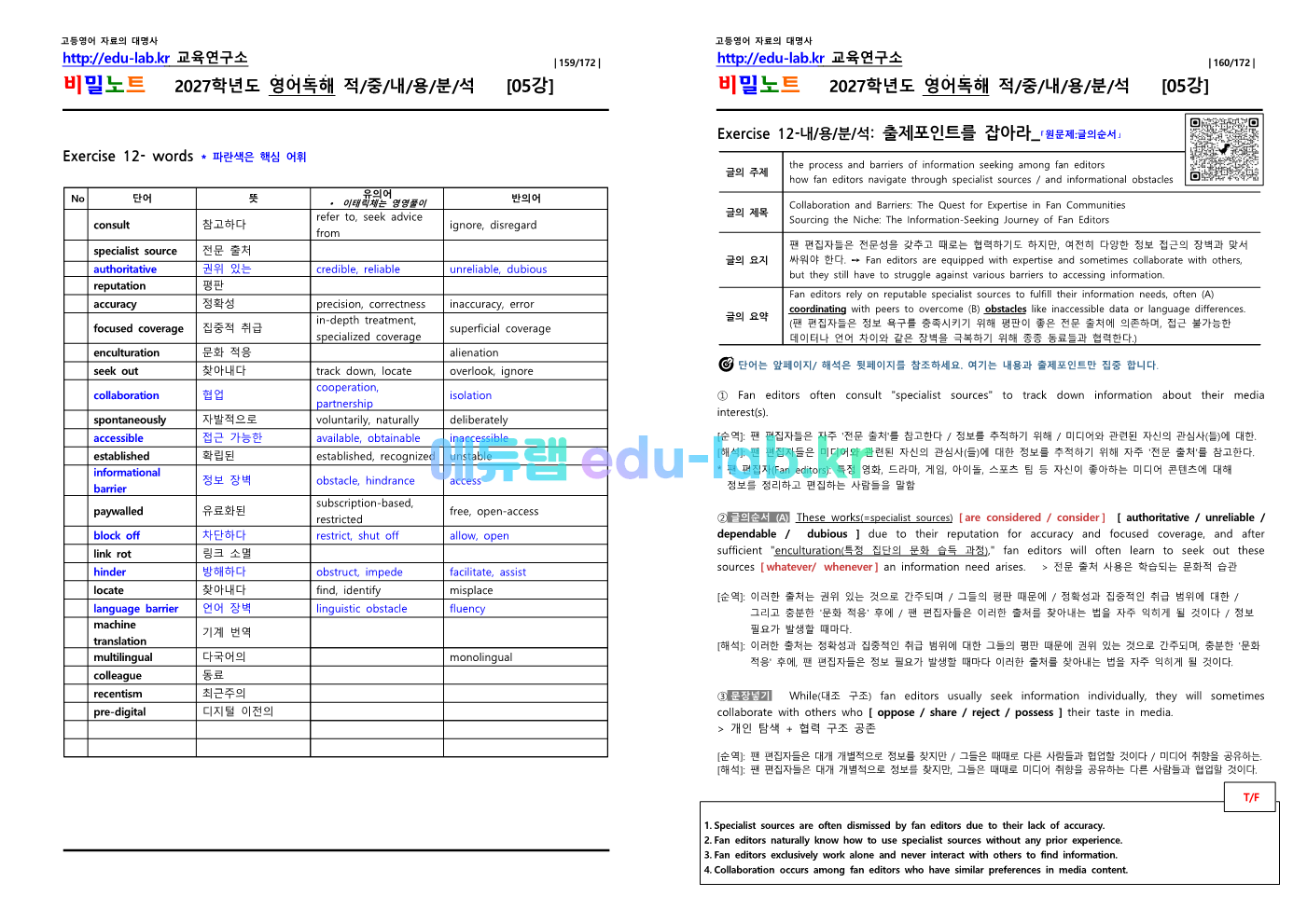 [1등급 자료-외고에서 대박난] [비밀노트(edu-lab.kr)] 26년(2027학년도)수특영독 05강 신(信)적중 내용및지문분석(프리패스자료)