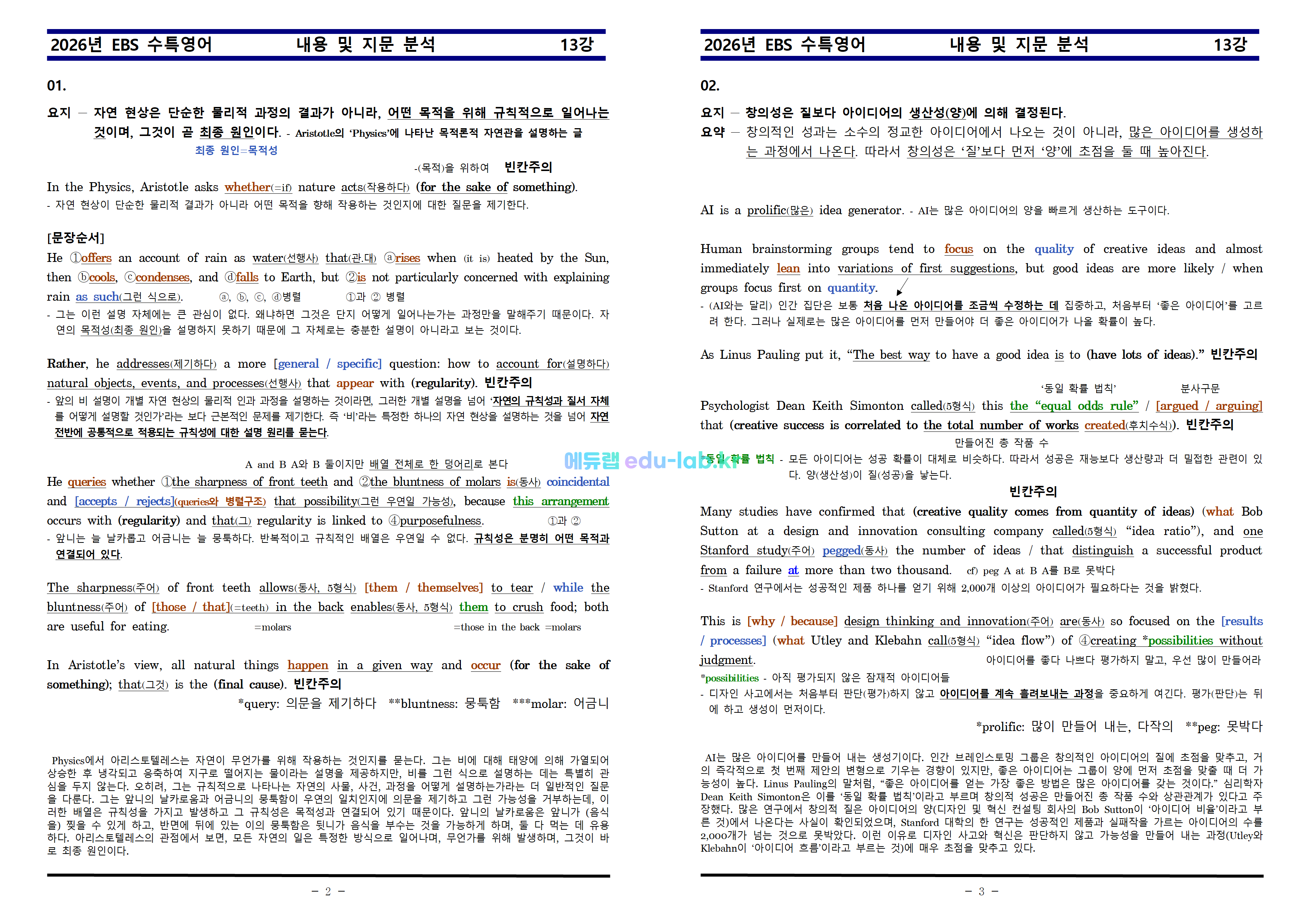 [비밀노트(edu-lab.kr)] [신조쌤] 수특영어 제 13 강 내용 및 지문분석_복습과제_원문_한문장해석하기 (프리패스=정회원 전용자료)