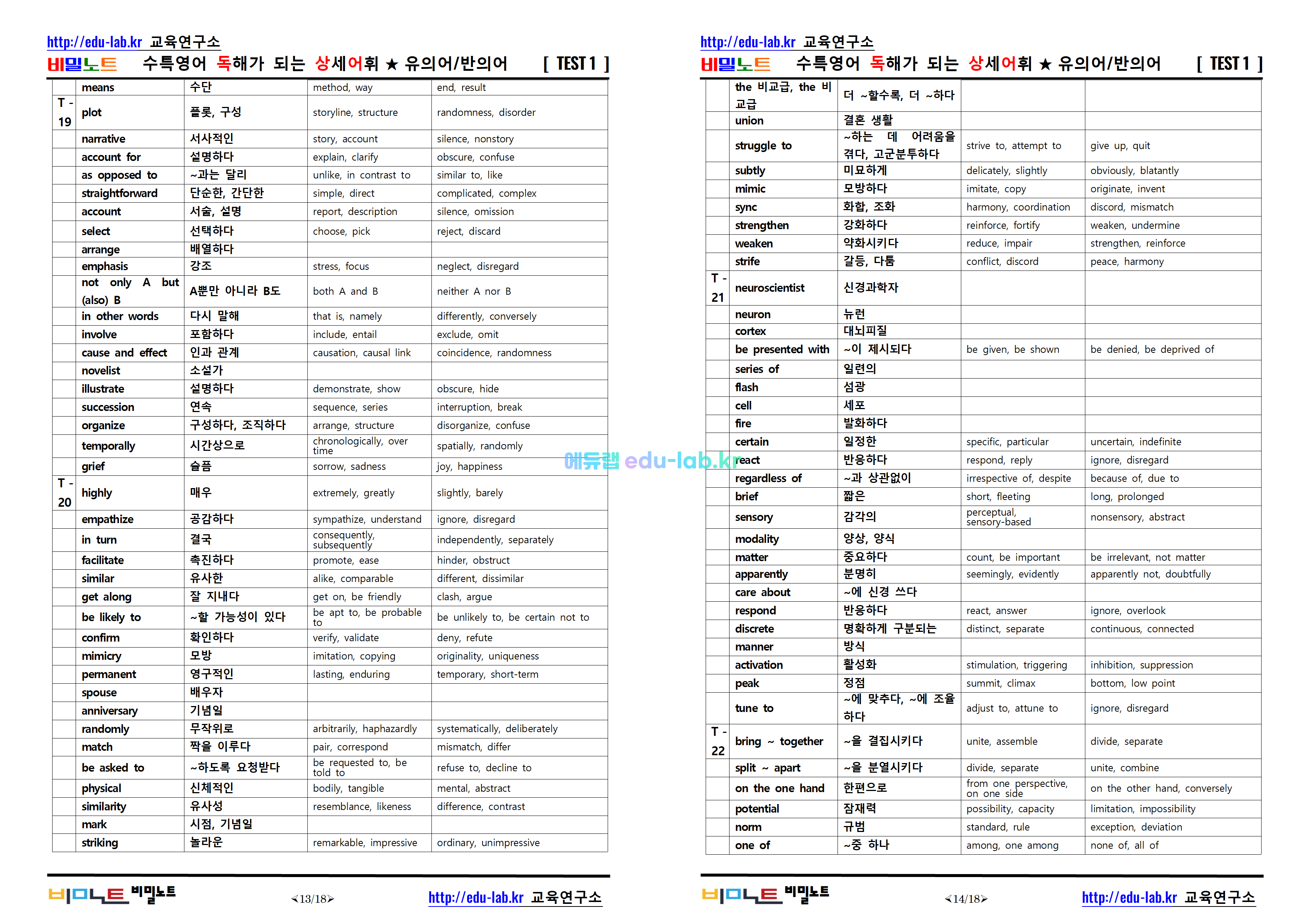 [비밀노트_에듀랩(edu-lab.kr)] 26년(27학년도) 수특영어 독상어(독해가 되는 상세어휘)_TEST 1강(프리패스=정회원 전용자료)