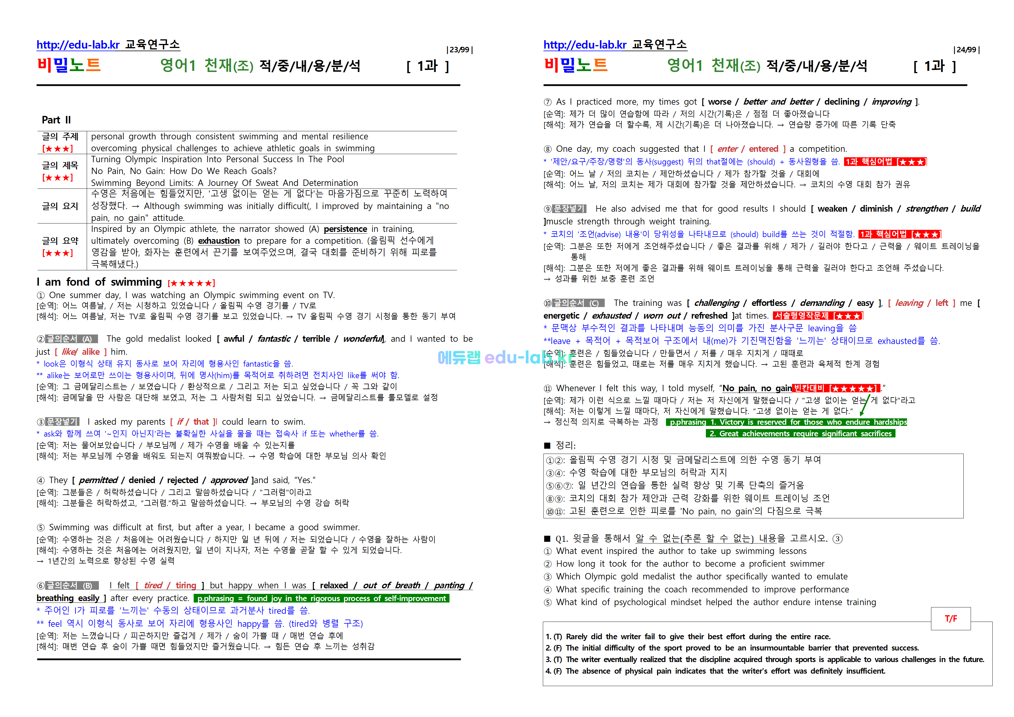 [비밀노트_에듀랩(edu-lab.kr)] 영어1 천재(조) 적중지문분석 & 출제포인트를 잡아라