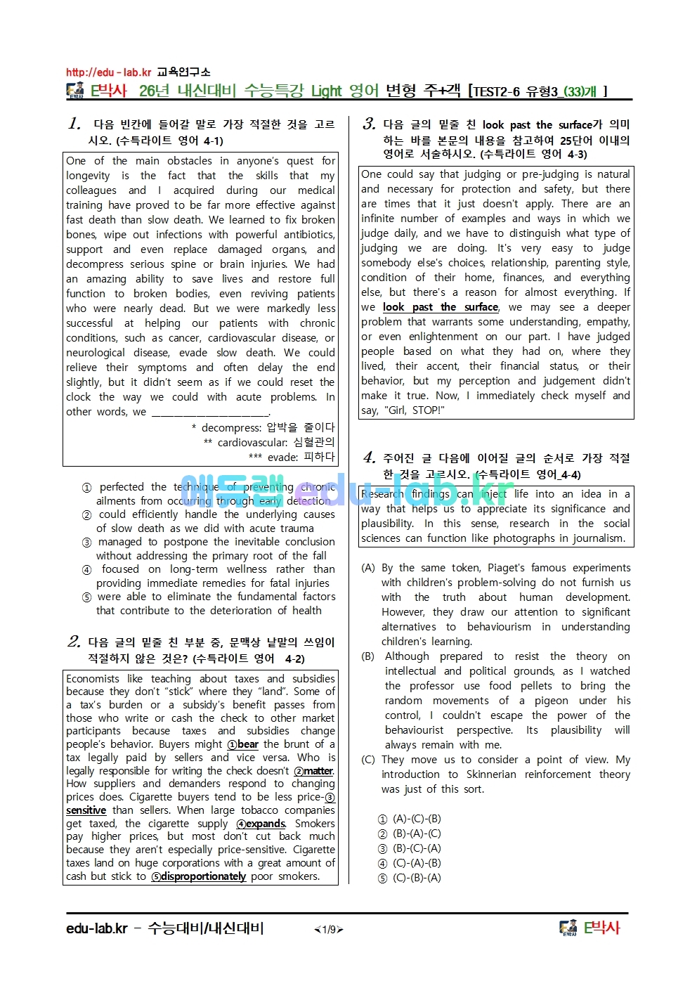 26년 내신대비 수능특강 Light 영어 변형 주+객 [TEST2-6 유형3_(33)개 ]
