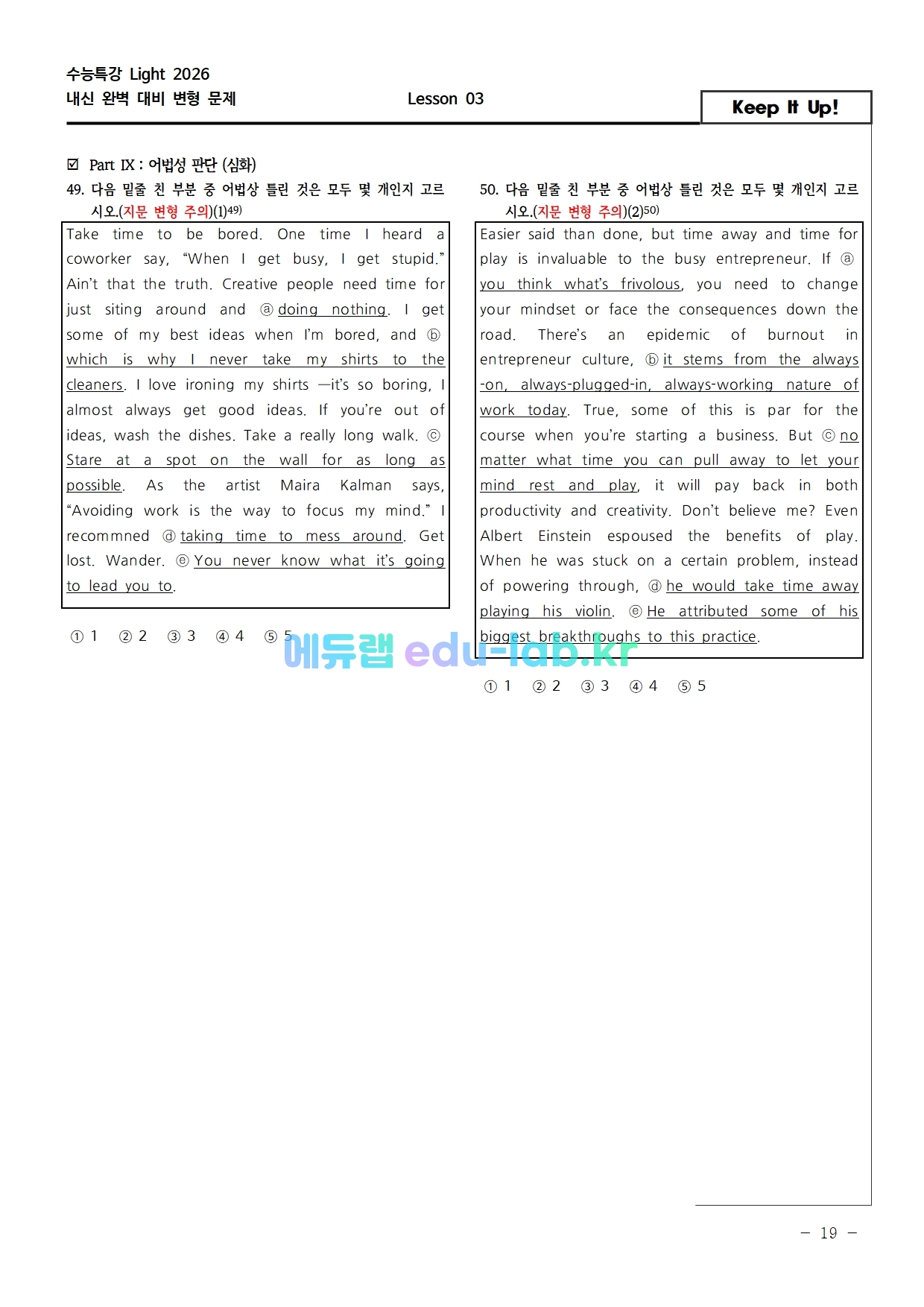 26년 개정 수특라이트 영어 5강 REAL 변형문제(객관식/서술형) 88문항워크북 차원의 문제가 아닌 실전형 문제입니다.