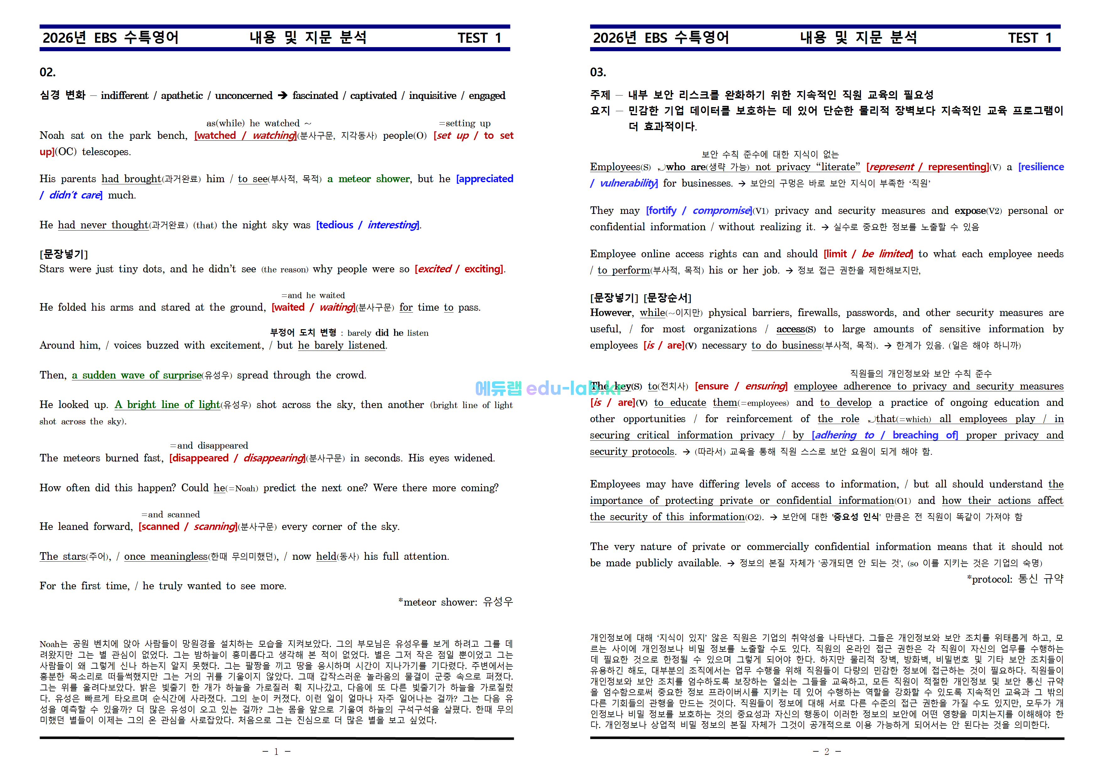 [비밀노트(edu-lab.kr)] [임세연쌤] 수특영어 TEST 1 내용 및 지문분석_2-7번_12-20번(프리패스=정회원 잔용자료)