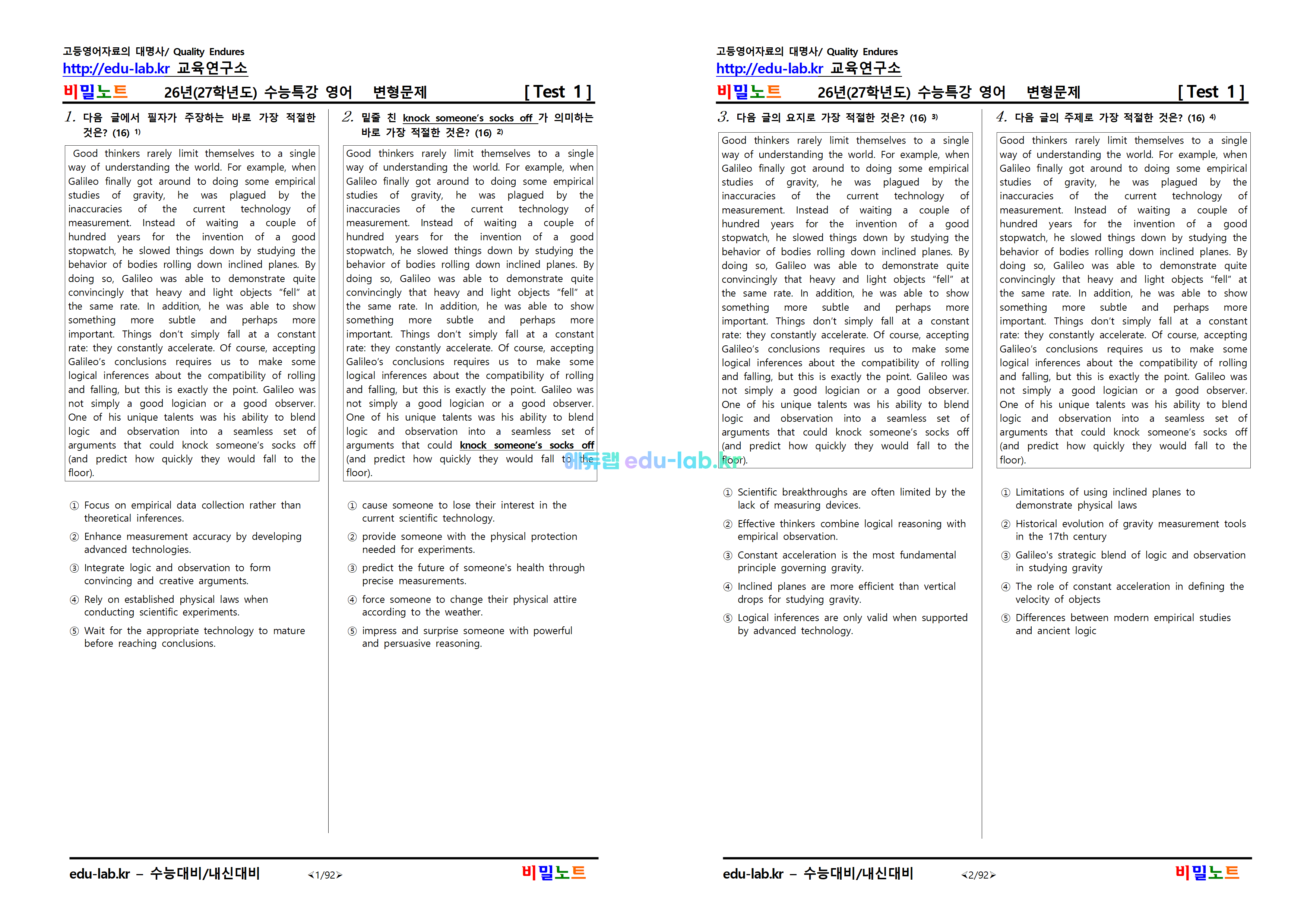 [비밀노트_에듀랩(edu-lab.kr)] 2027학년도_수특영어_ TEST 1_문항별_유형별 변형문제_1-25번(객관식)_374문제