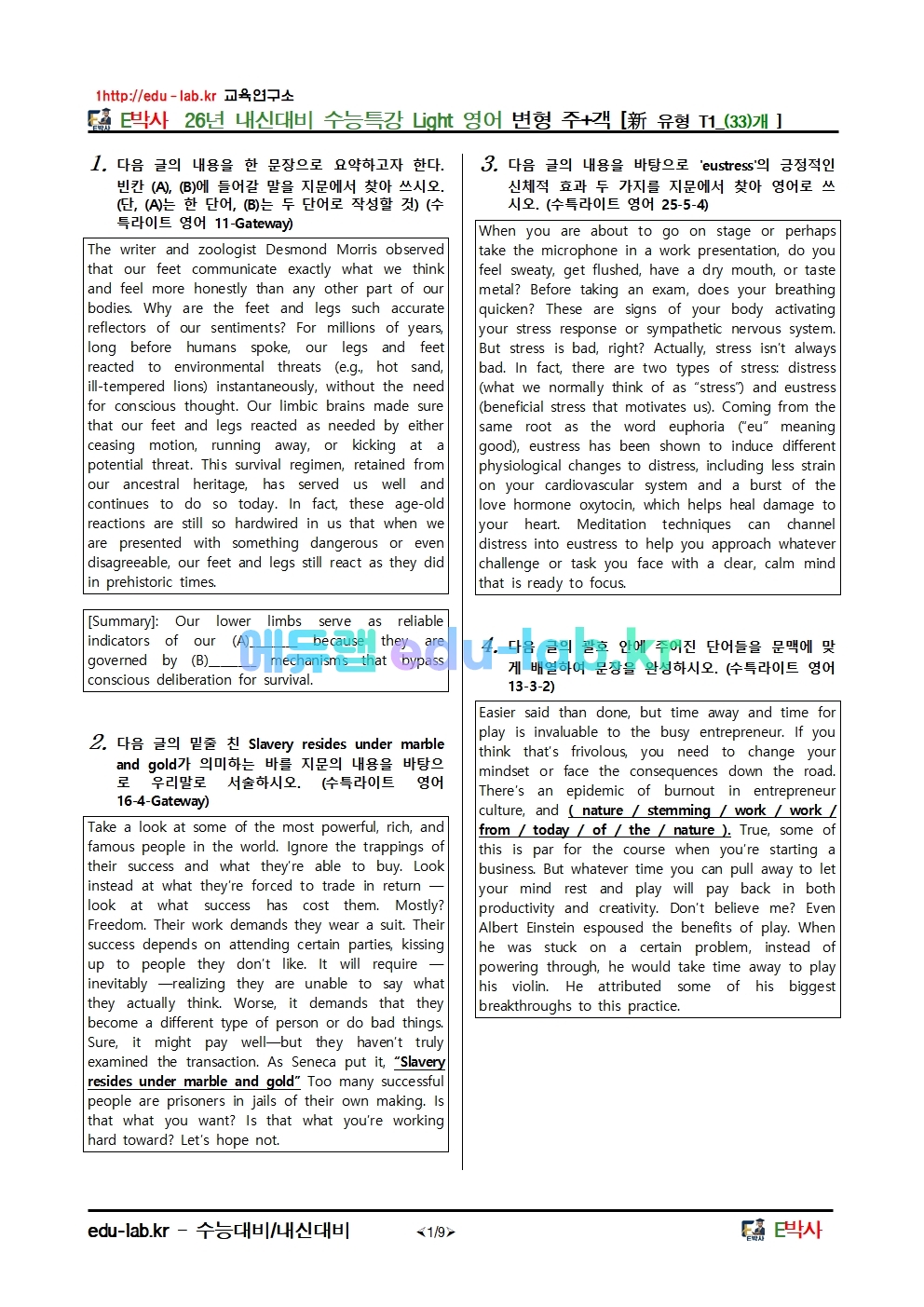 26년 내신대비 수능특강 Light 영어 변형 주+객 [新 유형 T1_(33)개 ]오늘도 즐거운 하루입니다. 반갑습니다. E박사입니다.