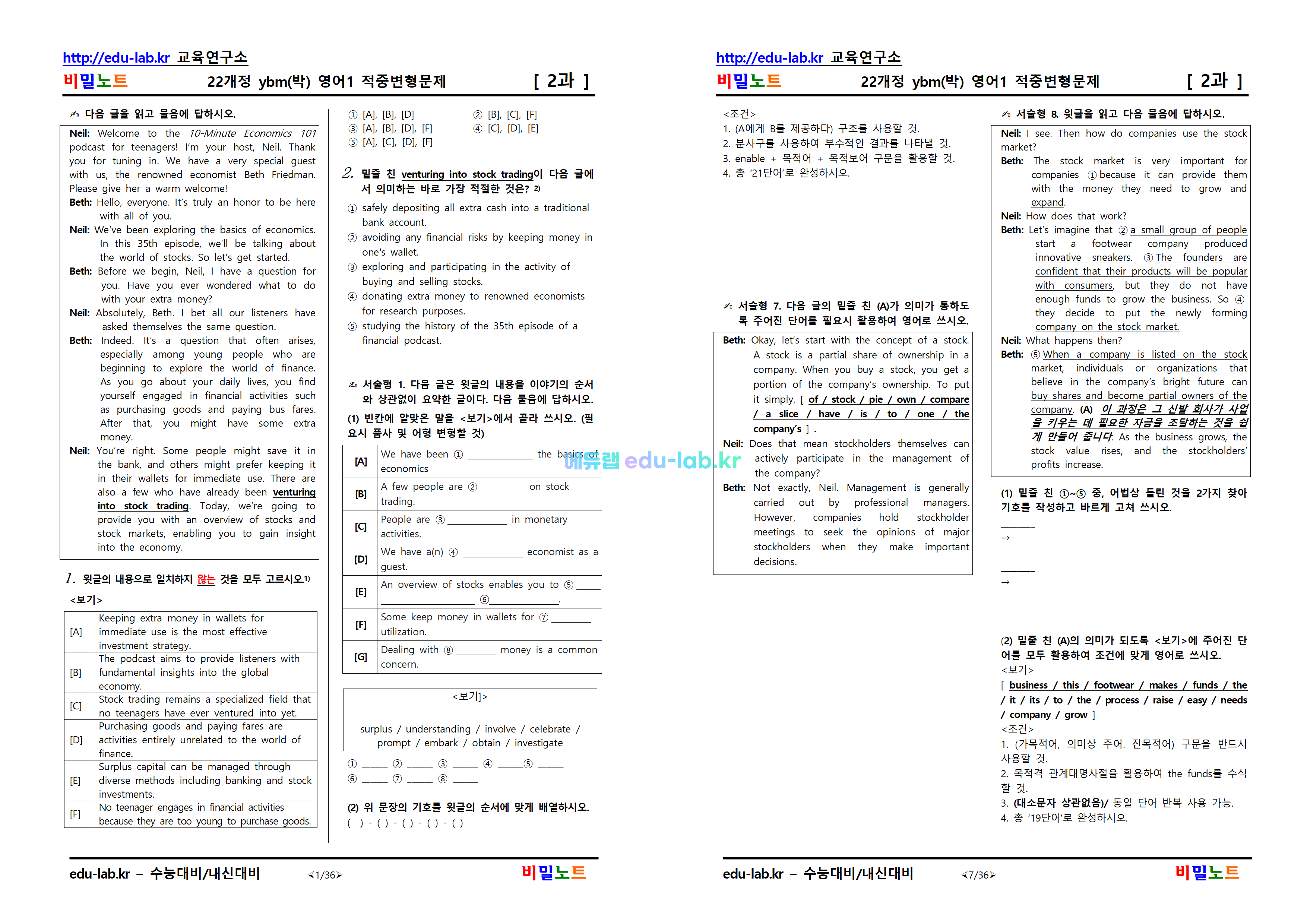 [비밀노트_에듀랩(edu-lab.kr)] 22개정 영어1 ybm(박) 2과 적중변형문제_82문항_BN2