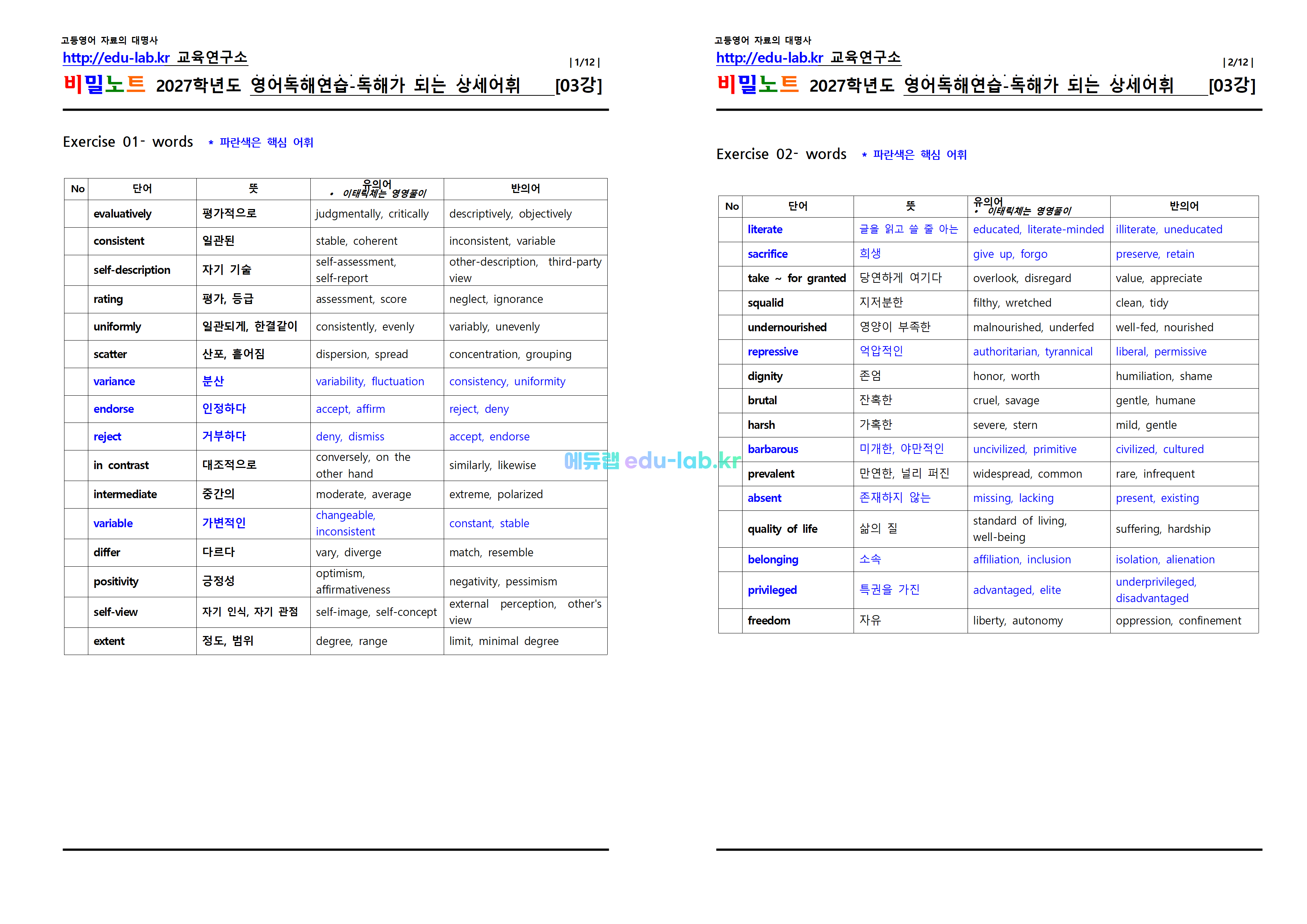 [비밀노트(edu-lab.kr)] 2027학년도 수특영독 03강 독해가 되는 상세어휘& 유의어 반의어 테스트포함(프리패스=정회원자료)