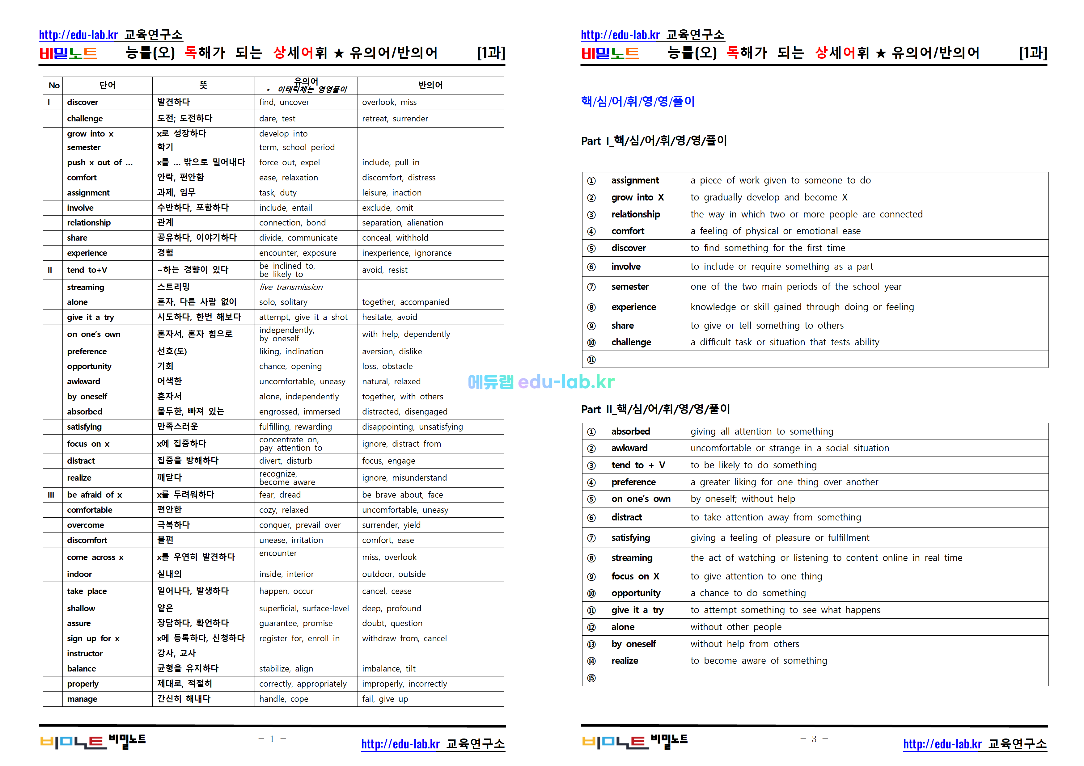밀노트_에듀랩(edu-lab.kr)] 공통영어1 능률(오) Lesson1 독상어(독해가되는상세어휘)-영영풀이(정회원=프리패스 전용자료)