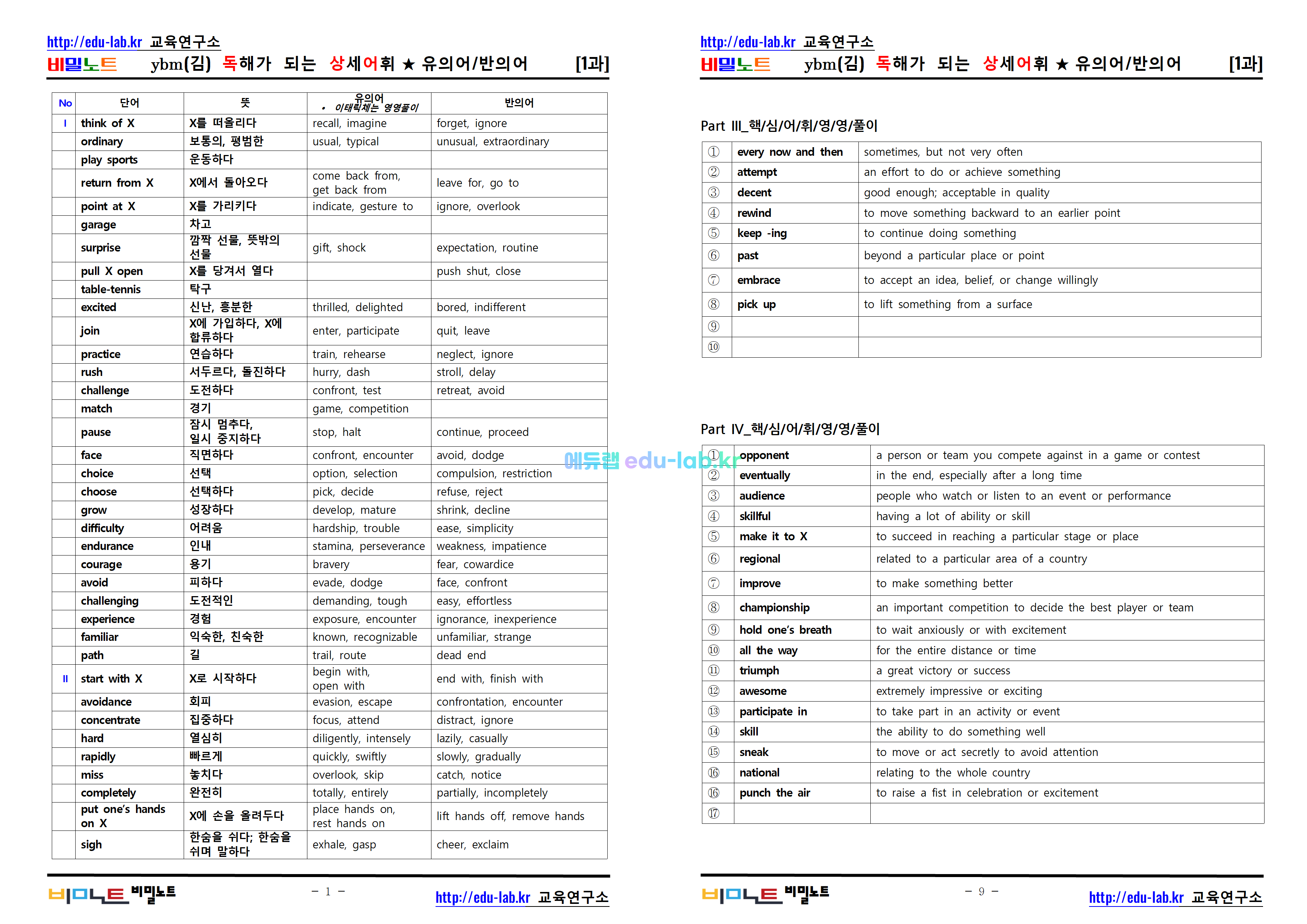 [비밀노트_에듀랩(edu-lab.kr)] 공통영어1 ybm(김) 1과_ 독해가 되는 상세어휘 및 유의어 반의어_영영풀이(정회원 전용자료)