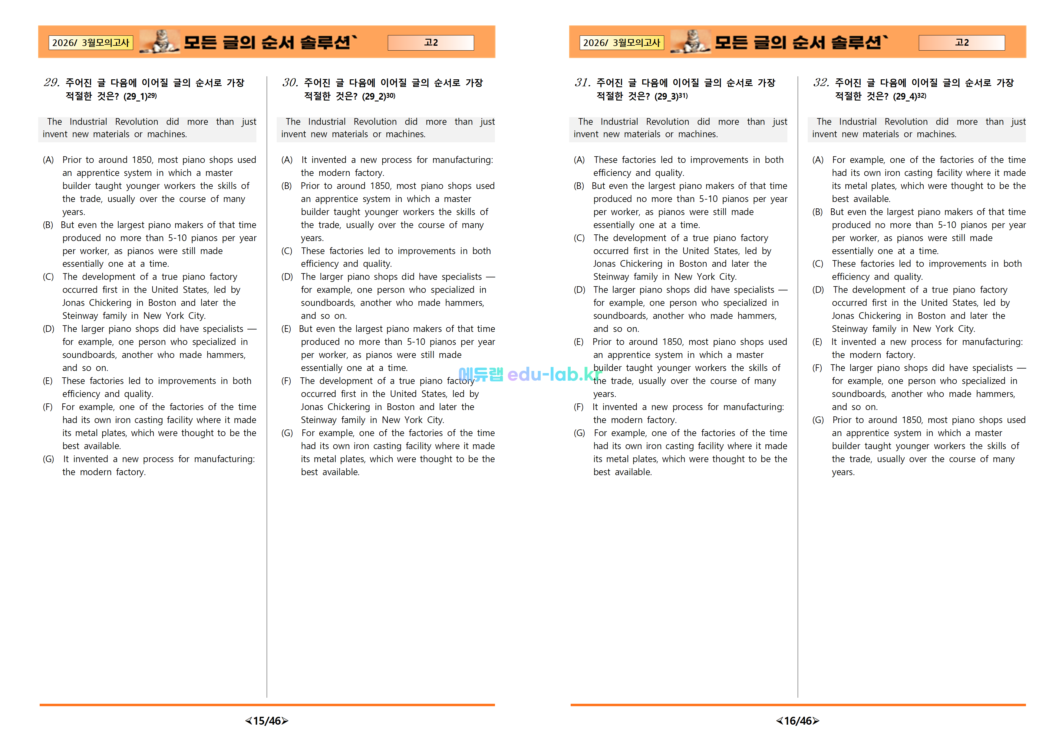 [비밀노트_에듀랩(edu-lab.kr)] 26년 3월 고2 모의고사 모든 글의 순서_한 지문 4세트(프리패스=정회원 전용자료)
