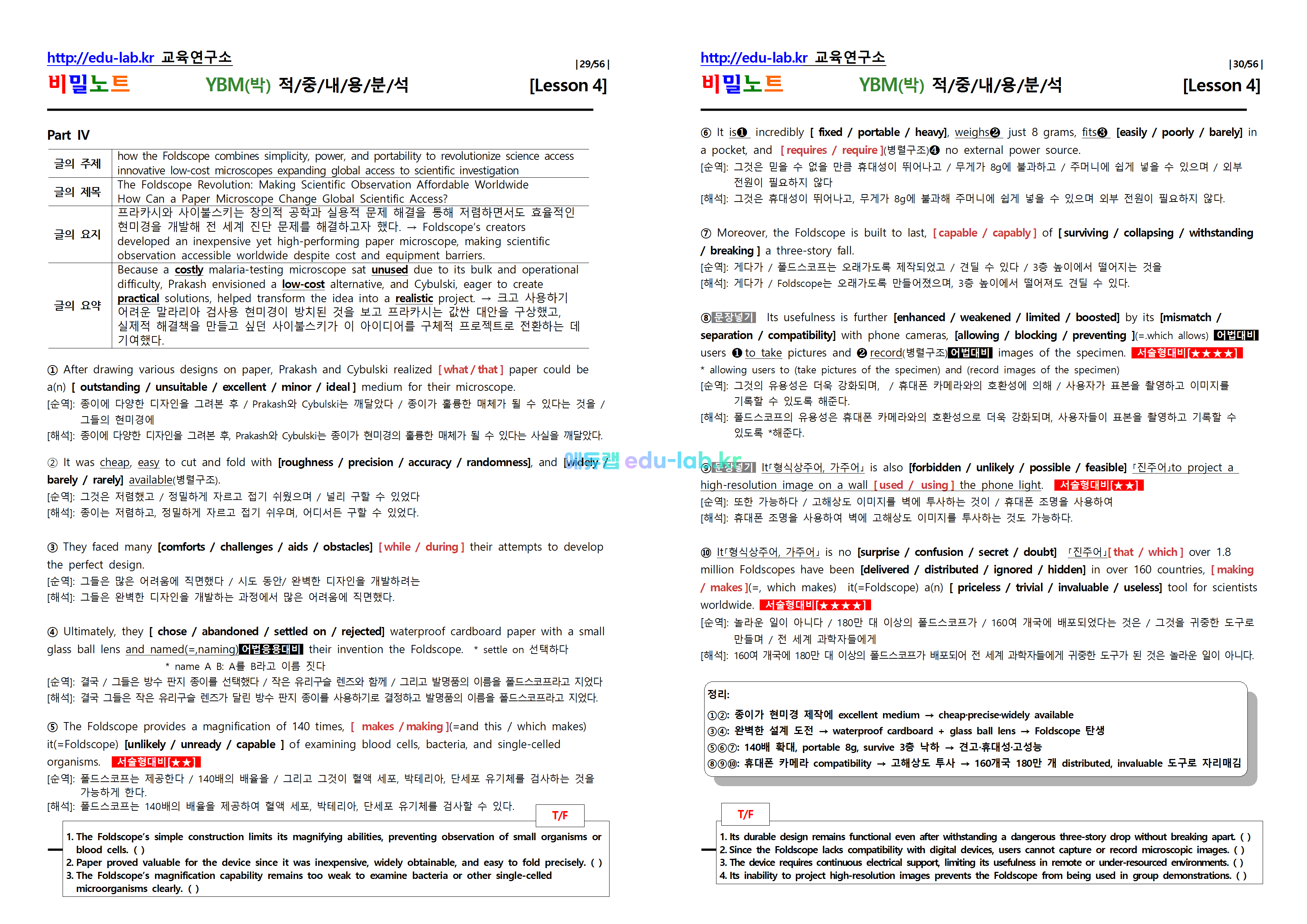 [비밀노트_에듀랩(edu-lab.kr)] 공통영어2 YBM(박) Lesson4 적중내용분석_내용정리_해석연습&영작연습(프리패스=정회원전용)[비밀노트_에듀랩(edu-lab.kr)] 공통영어2 YBM(박) Lesson4 적중내용분석_내용정리_해석연습&영작연습