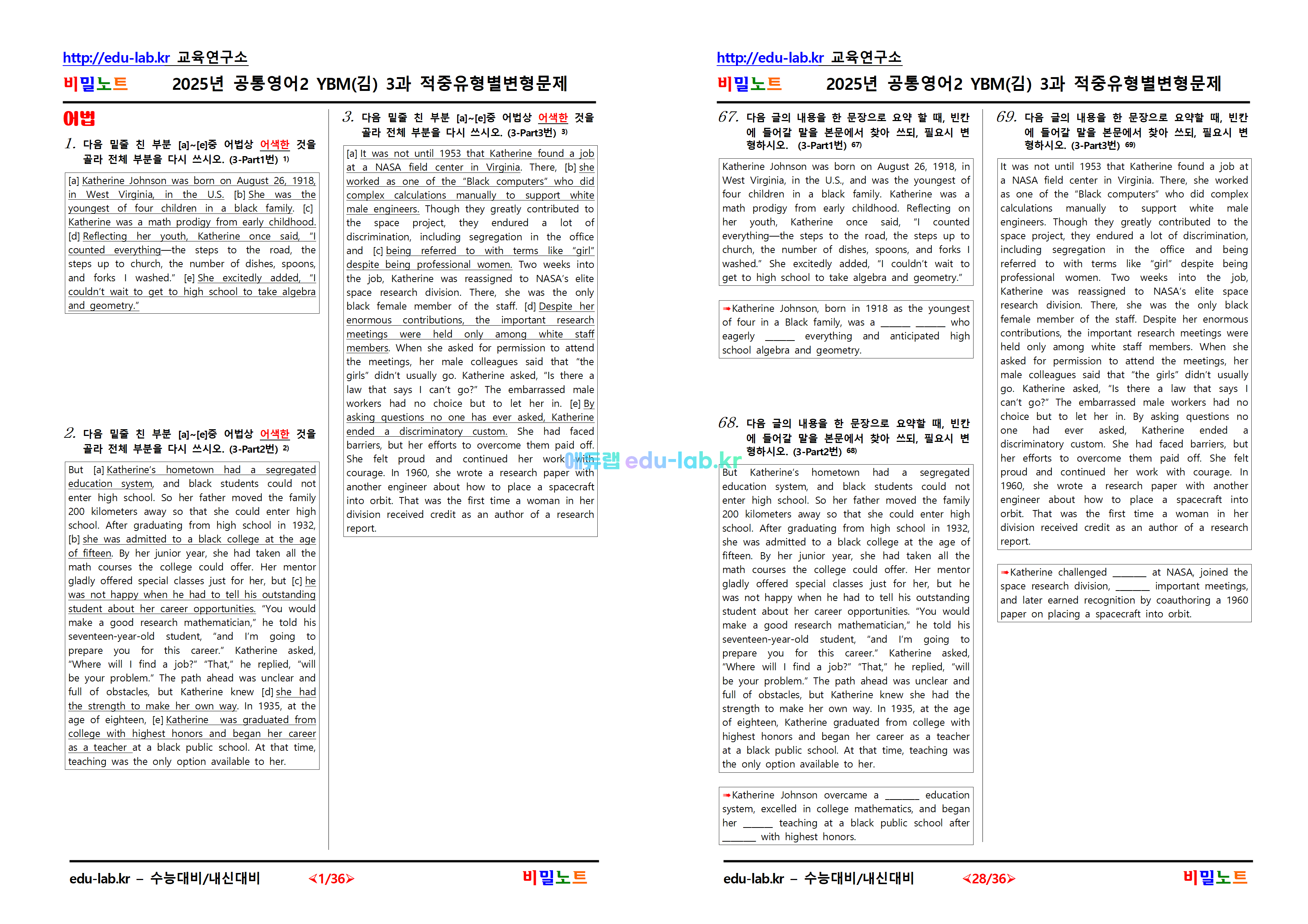 [비밀노트_에듀랩(edu-lab.kr)] 2025년 공통영어2 ybm(김)_3과_적중변형문제[비밀노트_에듀랩(edu-lab.kr)] 2025년 공통영어2 ybm(김)_3과_적중변형문제