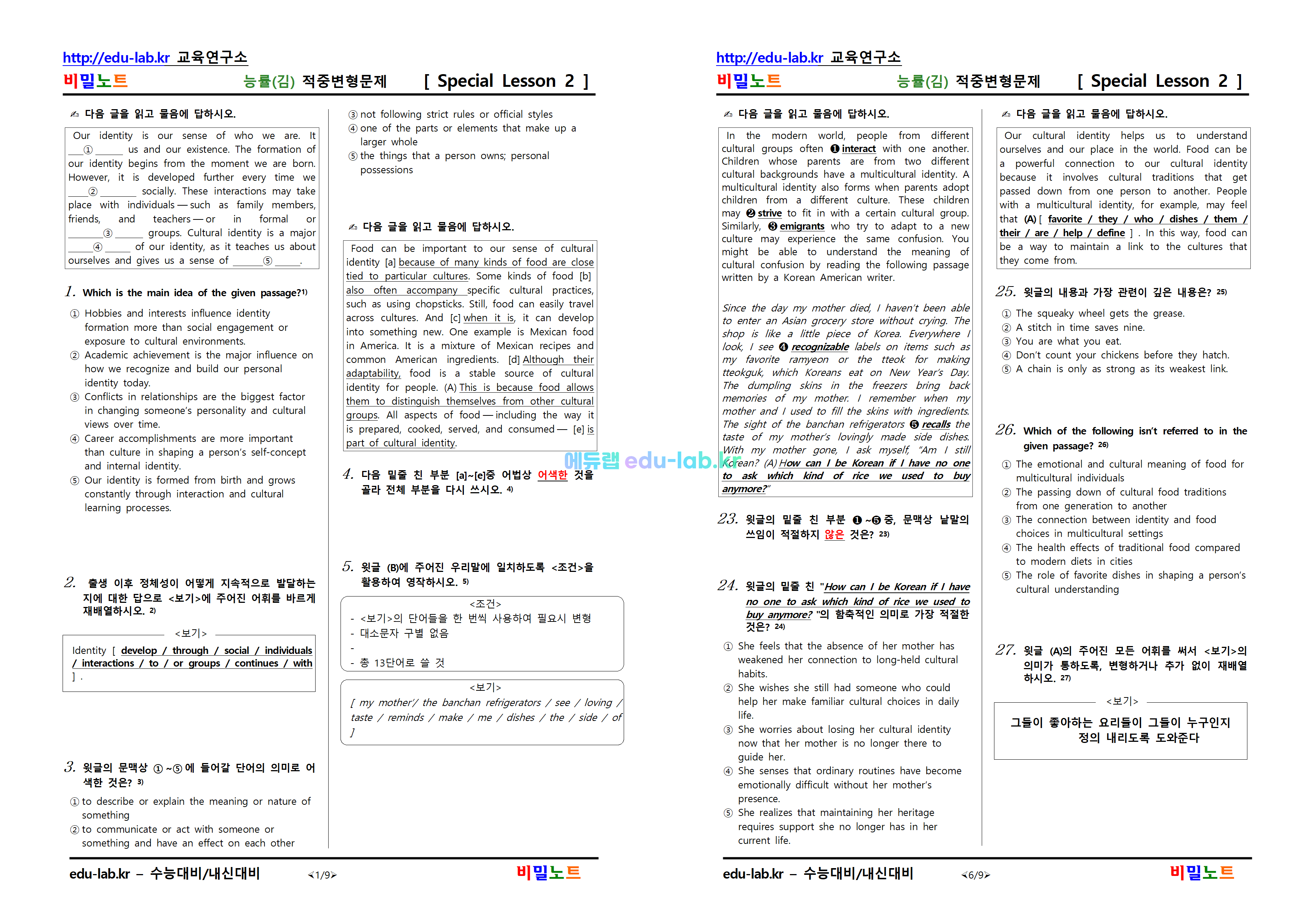 [비밀노트_에듀랩(edu-lab.kr)] 공통영어2 능률(민) Special Lesson2과 적중변형문제_2차(프리패스=정회원전용자료)[비밀노트_에듀랩(edu-lab.kr)] 공통영어2 능률(민) Special Lesson2과 적중변형문제_2차(프리패스=정회원전용자료)