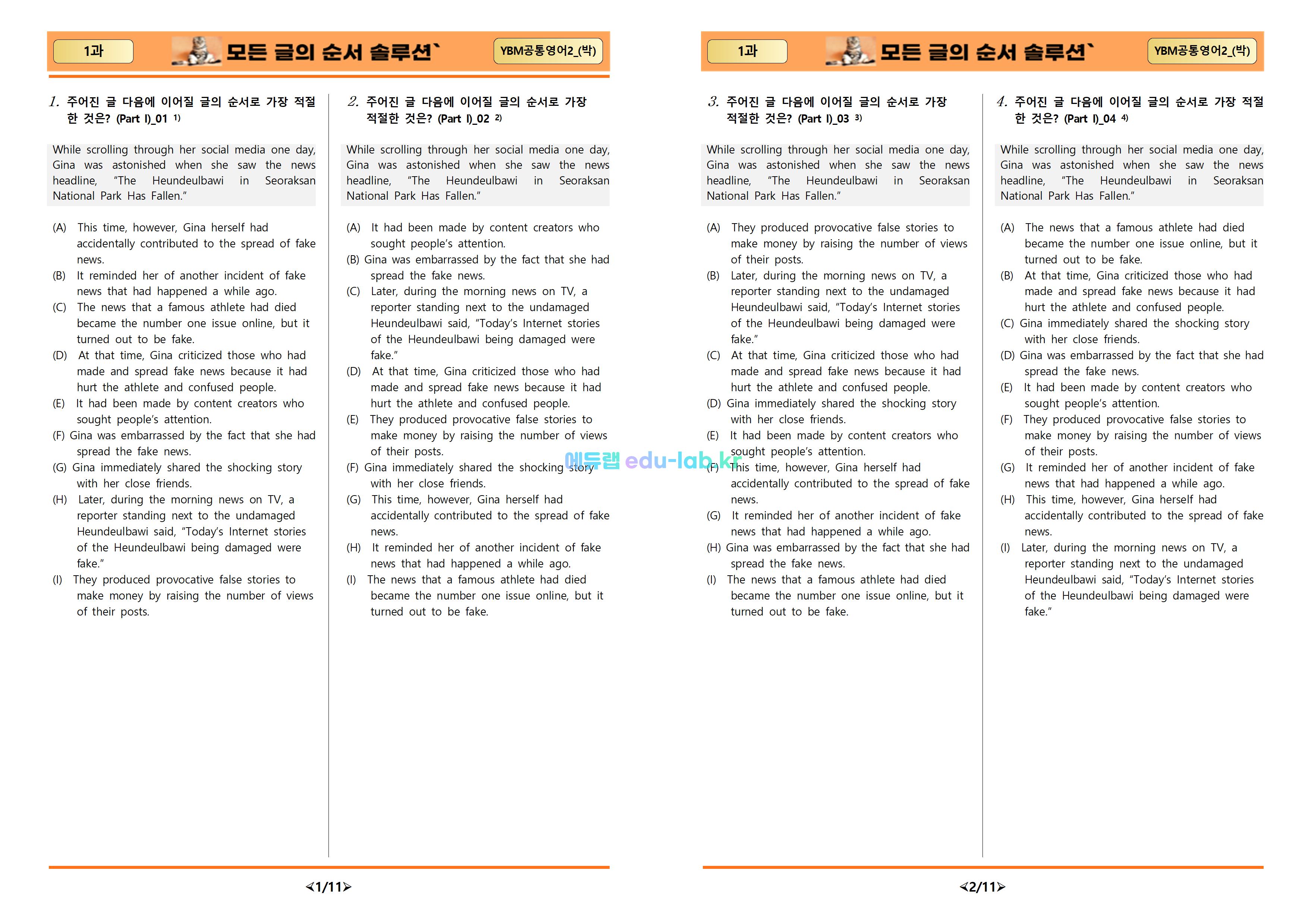 [비밀노트_에듀랩(edu-lab.kr)] 공통영어2 ybm(박) 1과 _모든글의순서(프리패스=정회원 전용자료)[비밀노트_에듀랩(edu-lab.kr)] 공통영어2 ybm(박) 1과 _모든글의순서(프리패스=정회원 전용자료)